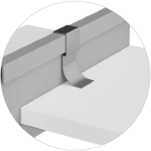 La unión del perfil a la pieza depende del ancho de la misma. Detalle de unión entre perfil sierra y techo continuo válido para TC47 y TC60