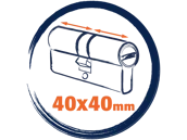 40 x 40 mm Se utiliza en puertas más gruesas con cerradura centrada. Es menos común que otras medidas, pero útil cuando ambos lados necesitan más longitud sin descentrar el bombín.