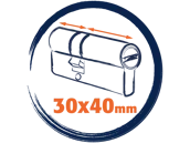 30 x 40 mm Bombines descentrados, comunes en puertas blindadas o cuando uno de los lados tiene un escudo metálico más grueso.