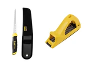 Corte de placa y repaso Mejora el corte y repaso de placa de yeso con serruchos de placa, biseladores y escofinas para cantos. Precisión técnica garantizada para instaladores.