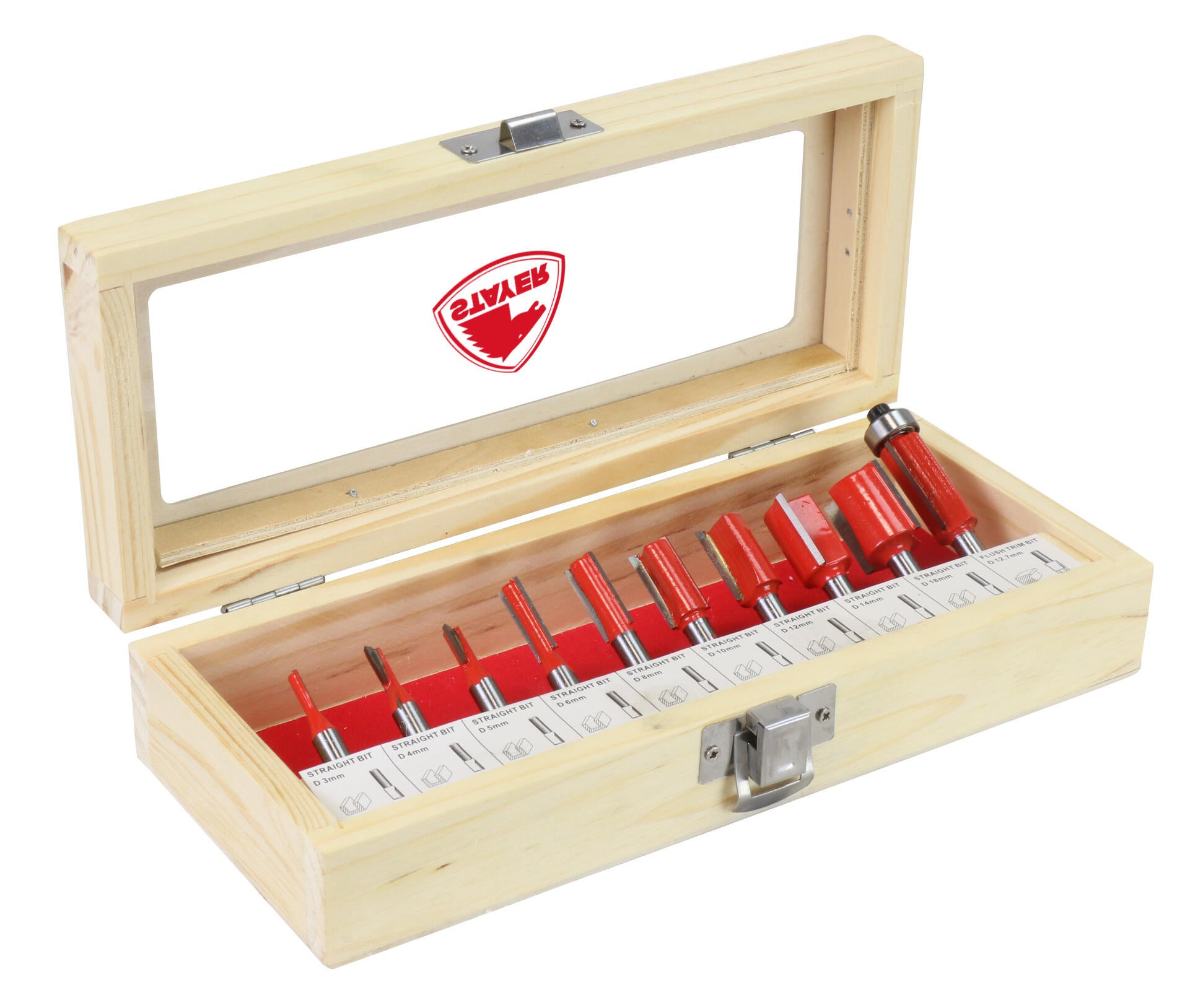 Juego de 10 fresas rectas de 6 mm de vástago. Fresas para madera de acero al carbono con cuchilla de widia de alto rendimiento. Para fresadora de 6 mm.