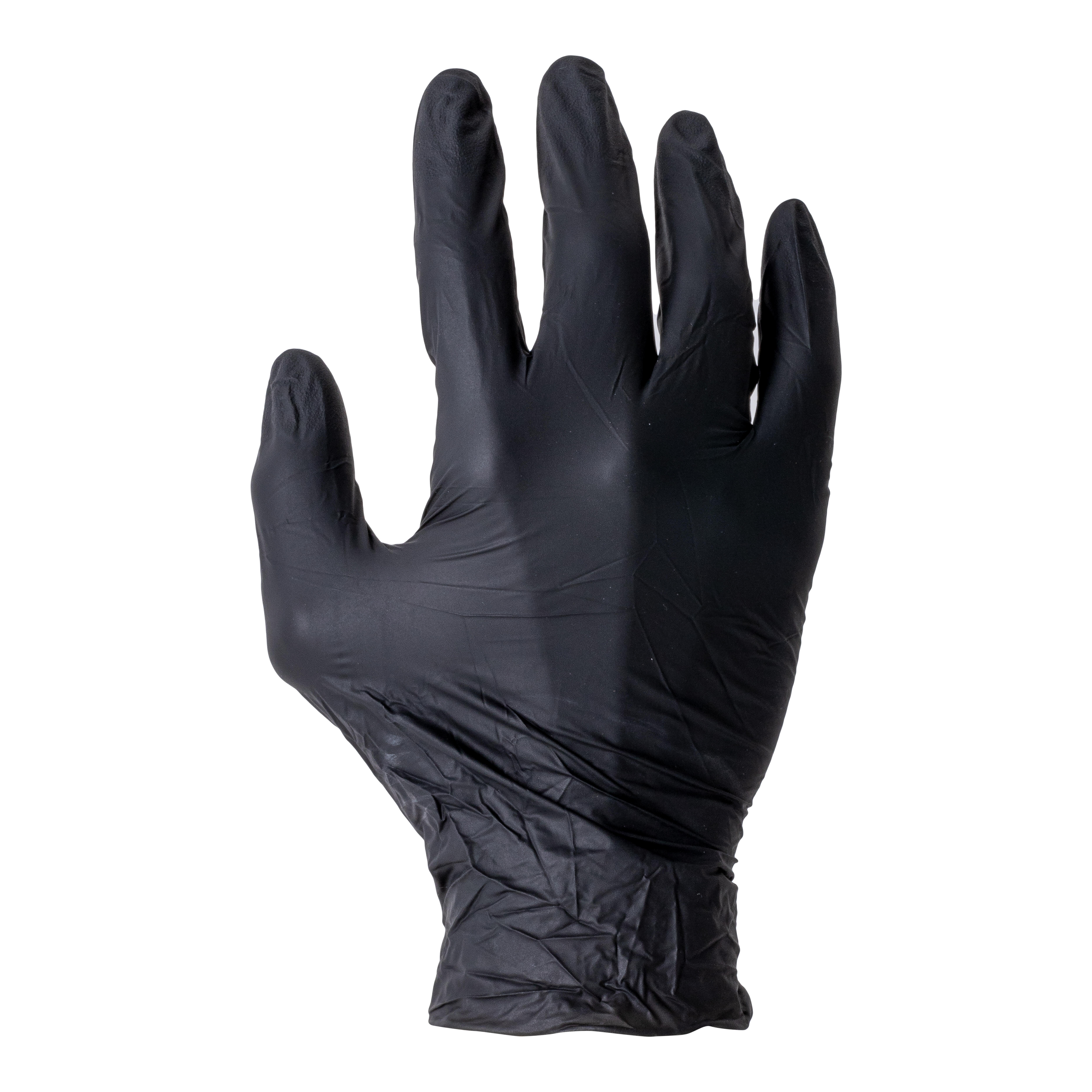 Guante desechable de nitrilo sin polvo. Color negro. Grosor 0.08mm. Caja de 100 unidades. El nitrilo aporta mayor durabilidad, elasticidad y resistencia a la perforación. Texturizado en la punta de los dedos para un mejor agarre. Ambidiestros y extrafinos. Buen agarre en seco y húmedo. Adecuado para personas alérgicas al látex. Apto para uso alimentario.