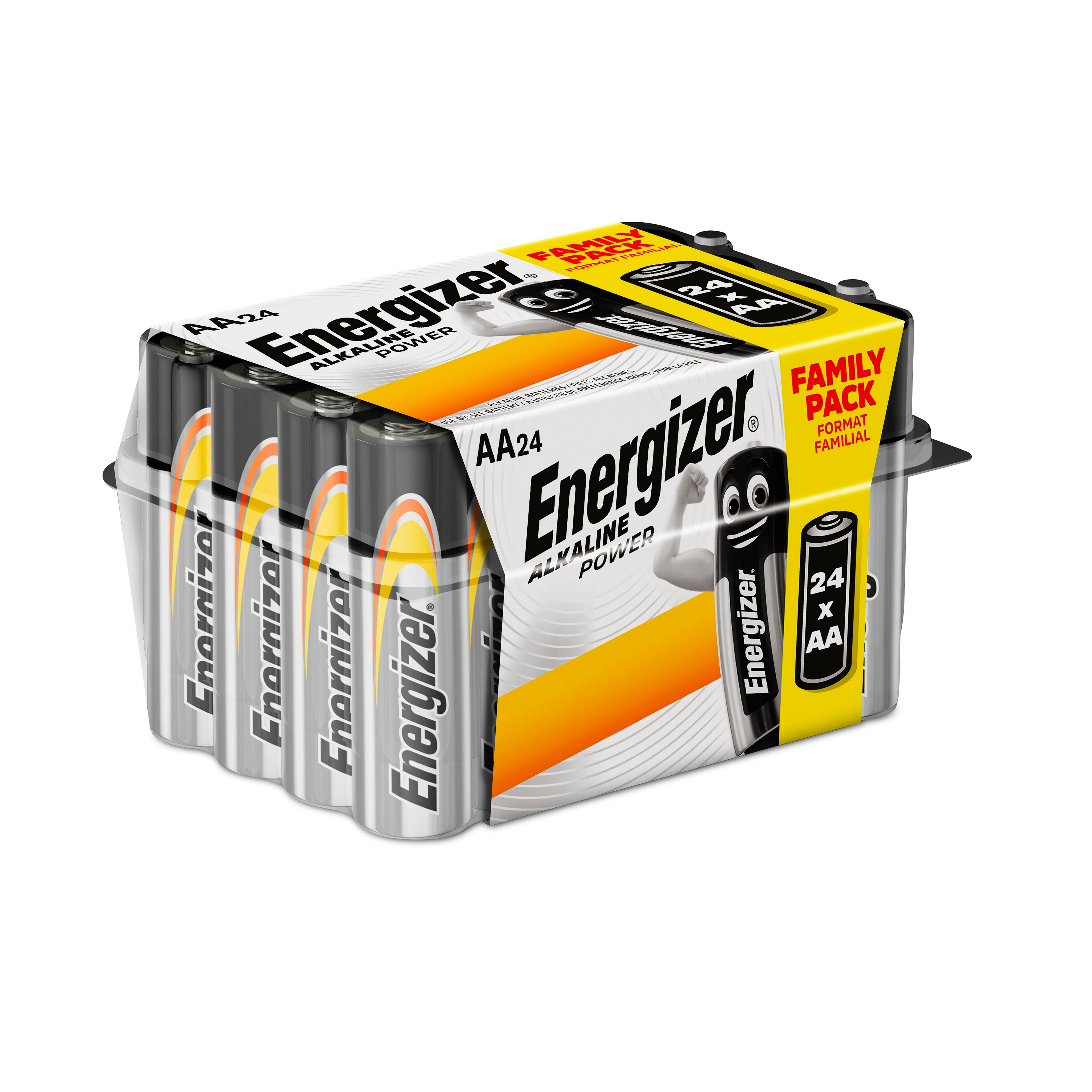 Pack de 24 pilas alcalinas Energizer modelo AA. Temperatura de funcionamiento de -18 a 55ºC. Contacto plano.