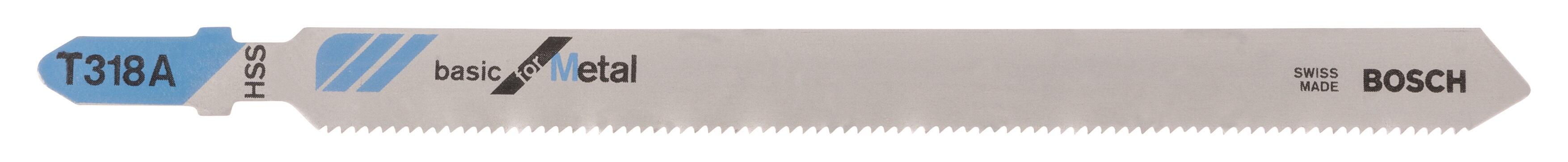 La hoja de sierra de calar T 318 A Basic for Metal realiza cortes en metal. El material de la hoja, acero de alta velocidad de alta calidad totalmente endurecido, es adecuado para cortar tubos y perfiles cerrados de acero, aluminio y materiales no ferrosos de dureza estándar. Además, el espacio entre dientes muy fino (1,2 mm) de la hoja corta tubos y perfiles metálicos de pared delgada de 1-3 mm de grosor, mientras su gran longitud (132 mm) corta tubos y perfiles de hasta 65 mm de diámetro. Para utilizar con sierras con sistemas de sujeción con vástago de una sola leva.