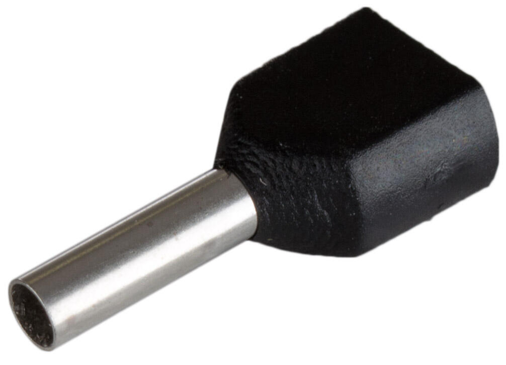 Terminal de puntera hueca doble en color negro de 8mm para cable de 2x1,5mm² en bolsa de 50 unidades. Este producto se enmarca dentro de una gama de productos consistente en bornes, terminales y aislamiento.