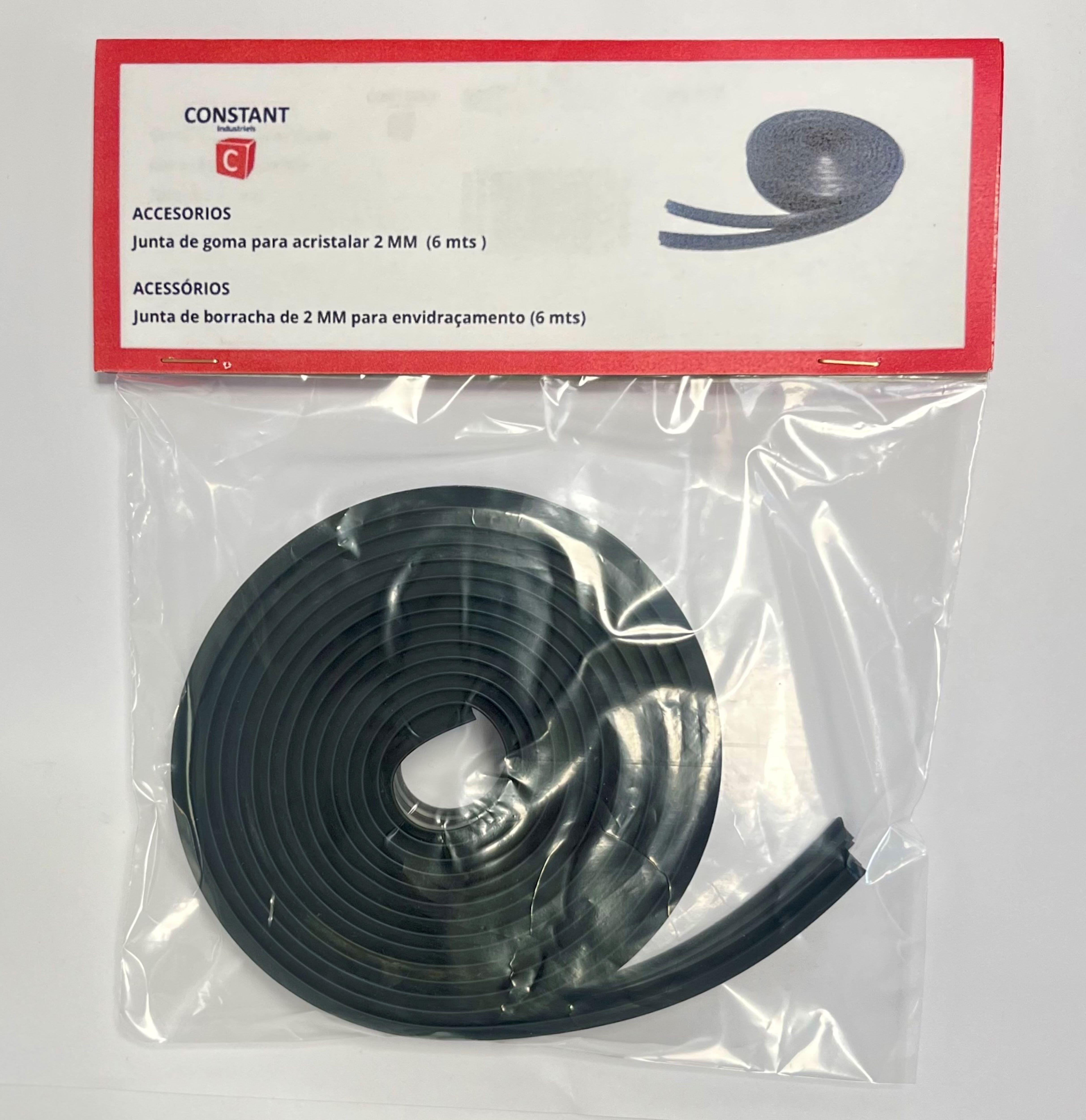 6 metros de burlete o junta de goma para acristalar con 2mm de espesor, en color negro