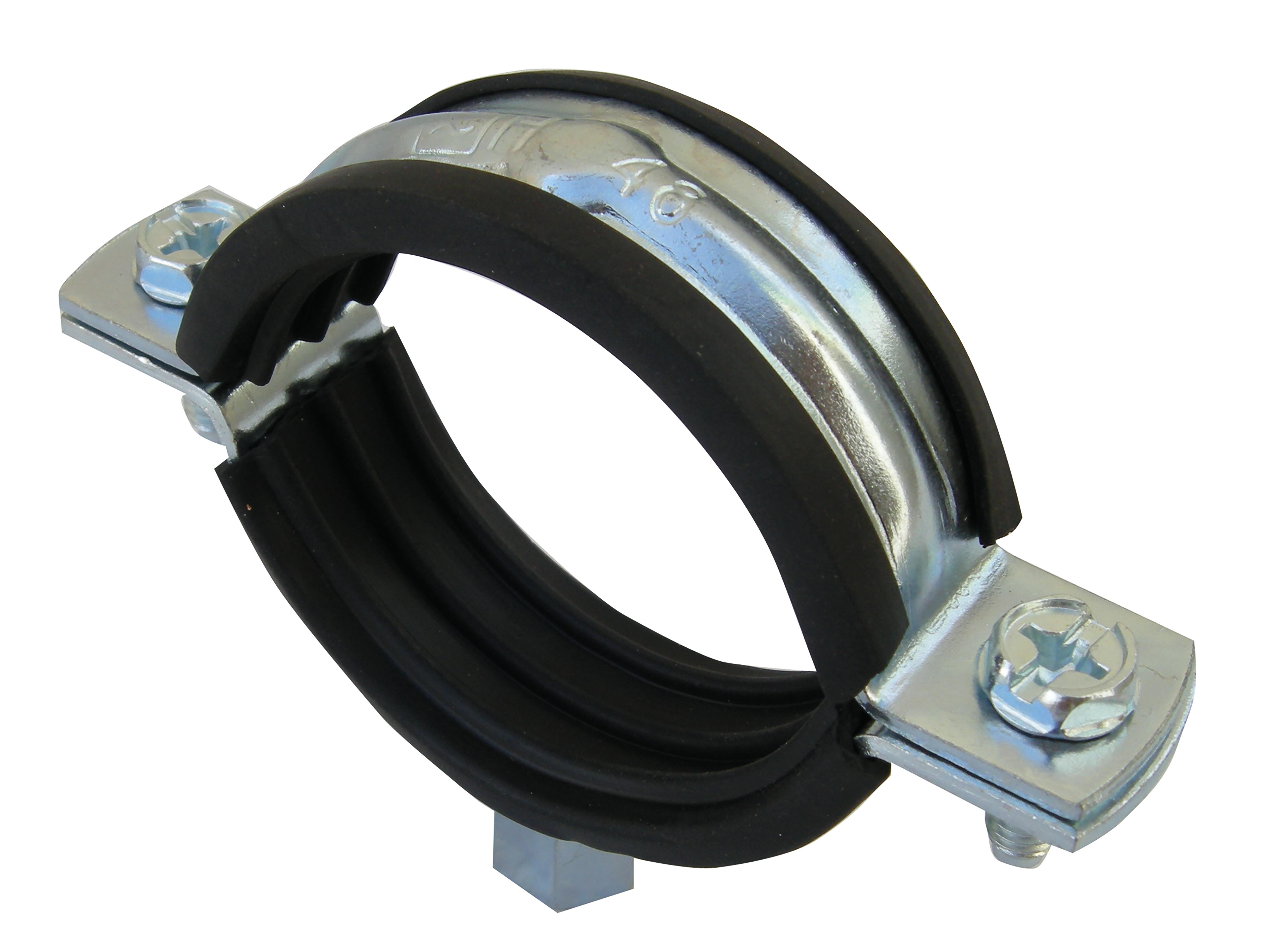 •Abrazadera isofónica reforzada M8-M10. •Para tuberías desde Ø60mm. •Acabado cincado electrolítico. •Goma de EPDM para aislamiento y reducción del sonido.