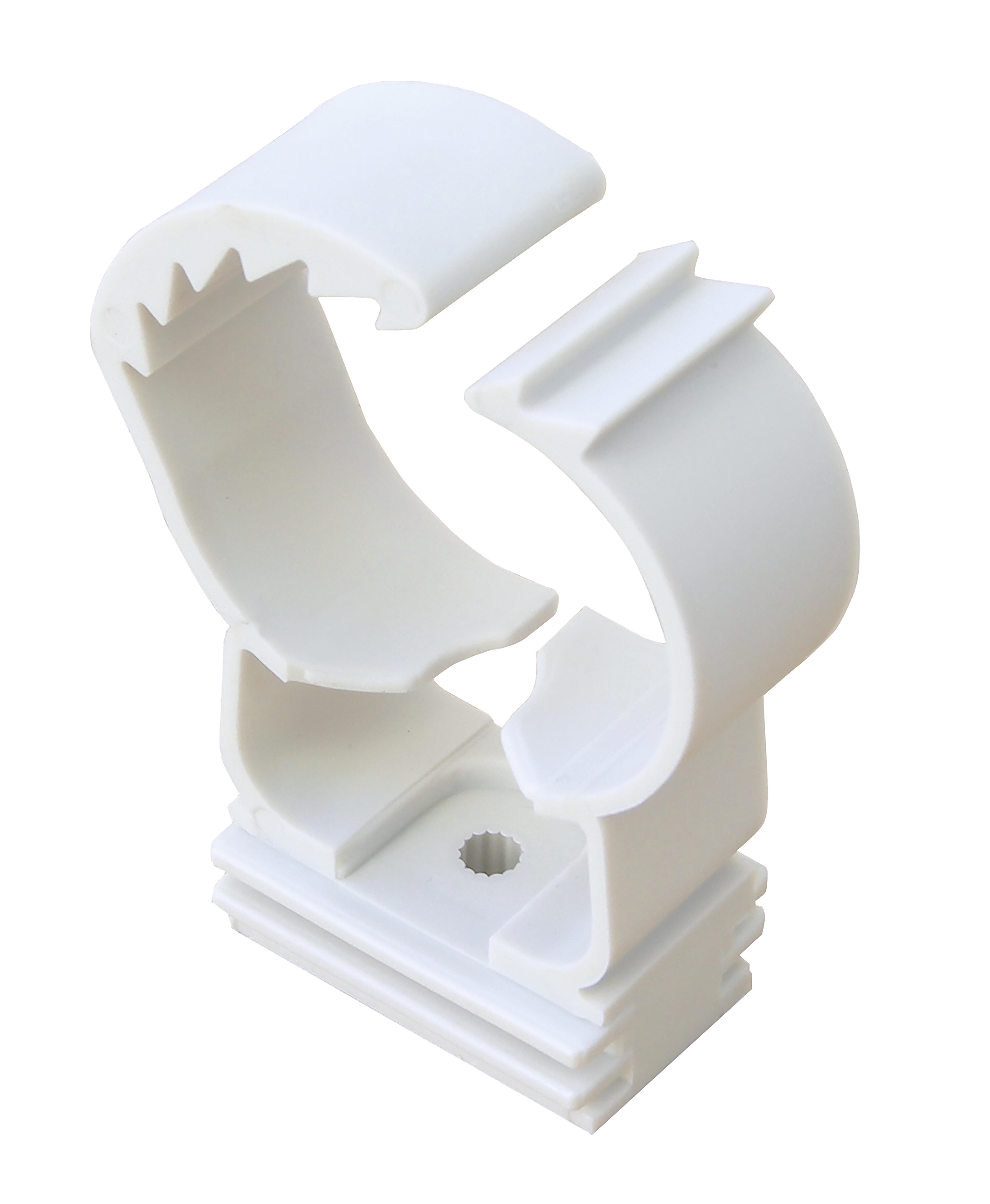 Abrazadera multiusos con cierre rápido Ø15-18mm. CARACTERÍSTICAS •Para montaje en paralelo. • Fijación por presión. • Libre de halógenos. •Para sujetar tuberías ligeras de acero, cobre, plástico y cable. • Temperatura de trabajo entre -10ºC a +80ºC. • Resistente a rayos ultravioletas, UV. • Material: polipropileno. • Material libre de halógenos. • Versión en color blanco.