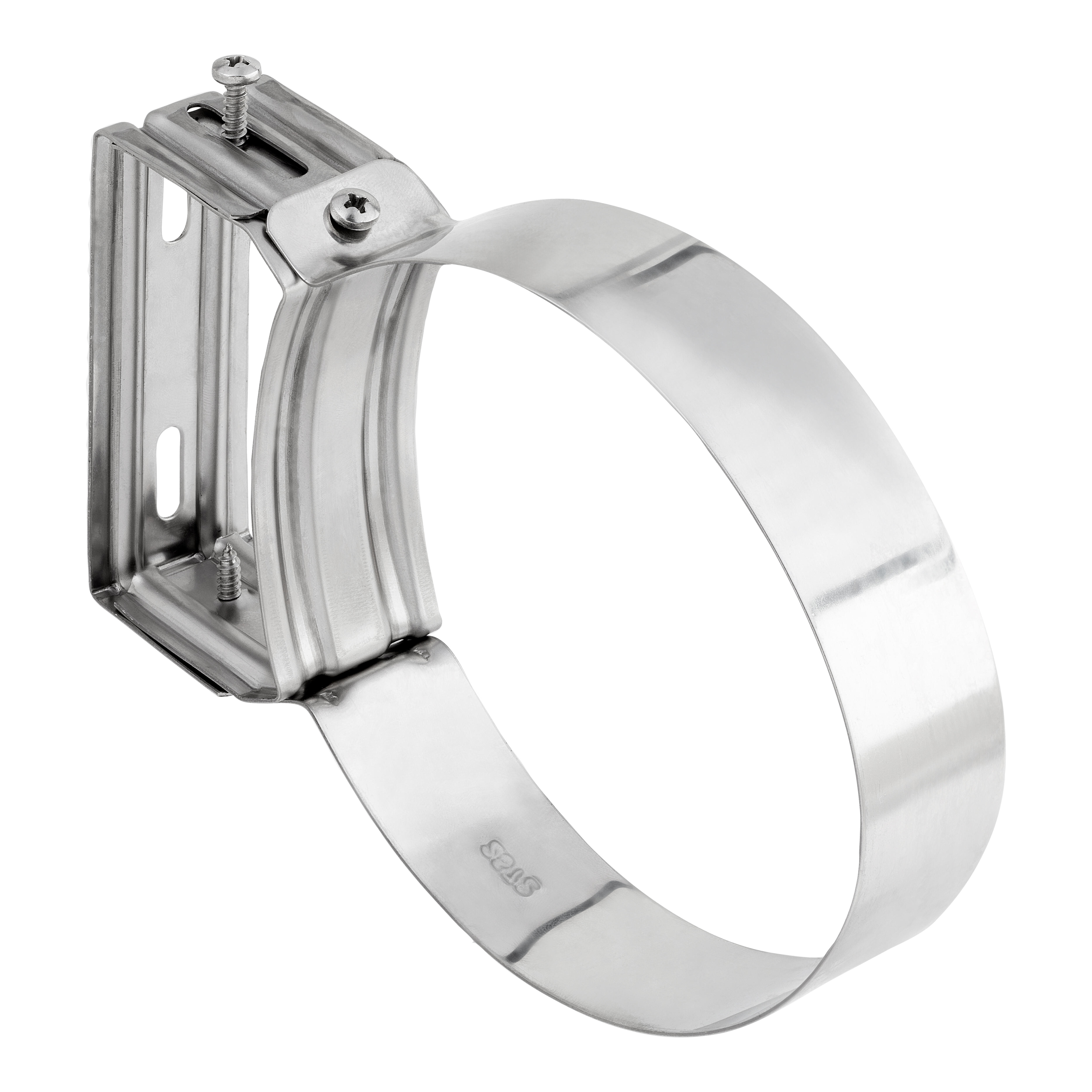 Abrazadera pared regulable simple pared inoxidable 316 para la evacuación de humos de estufas de leña, inserts y hogares. Diámetro: 130 mm.