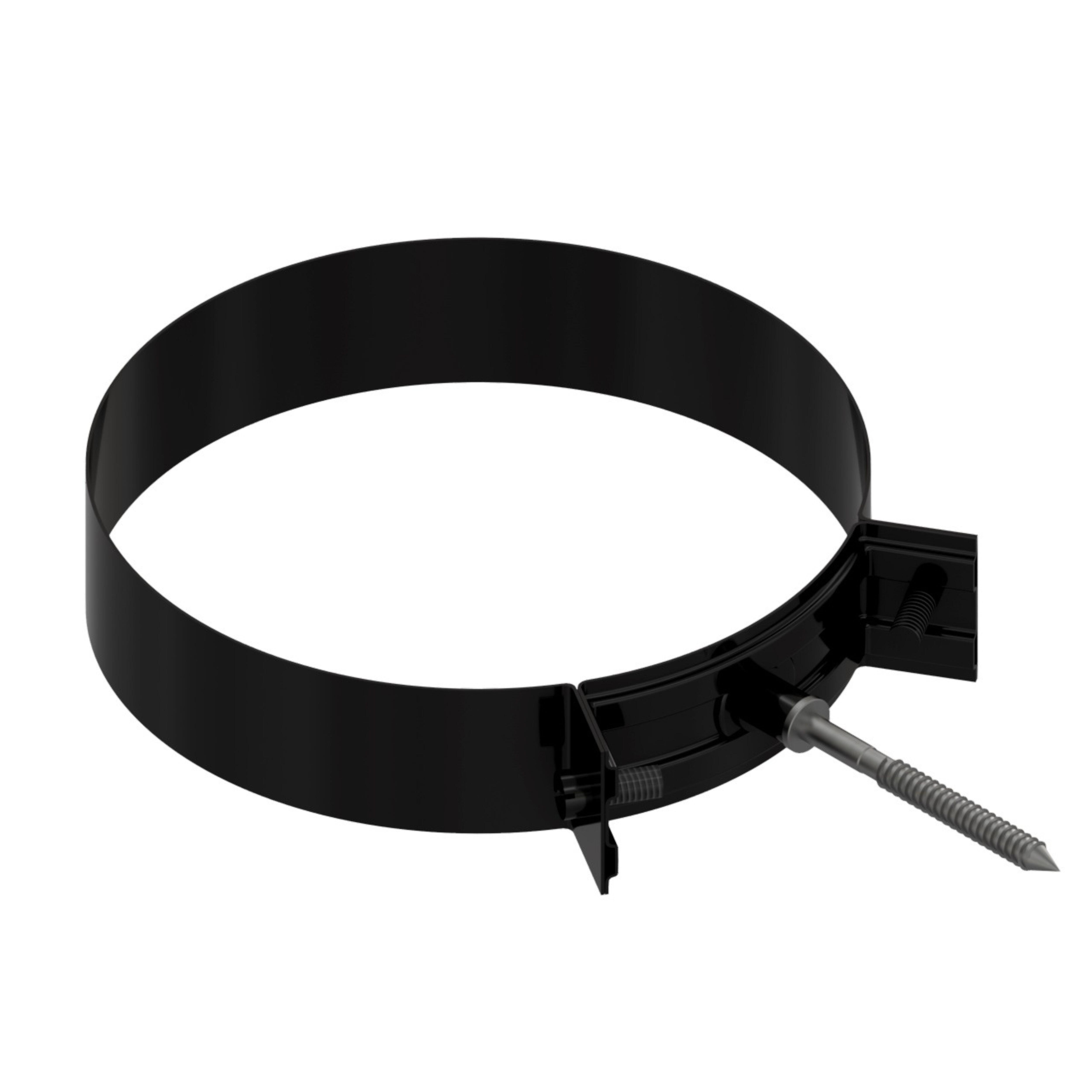Abrazadera pared regulable vitrificado para la evacuación de humos de estufas de leña, inserts y hogares. Diámetro: 200 mm. Negro mate.