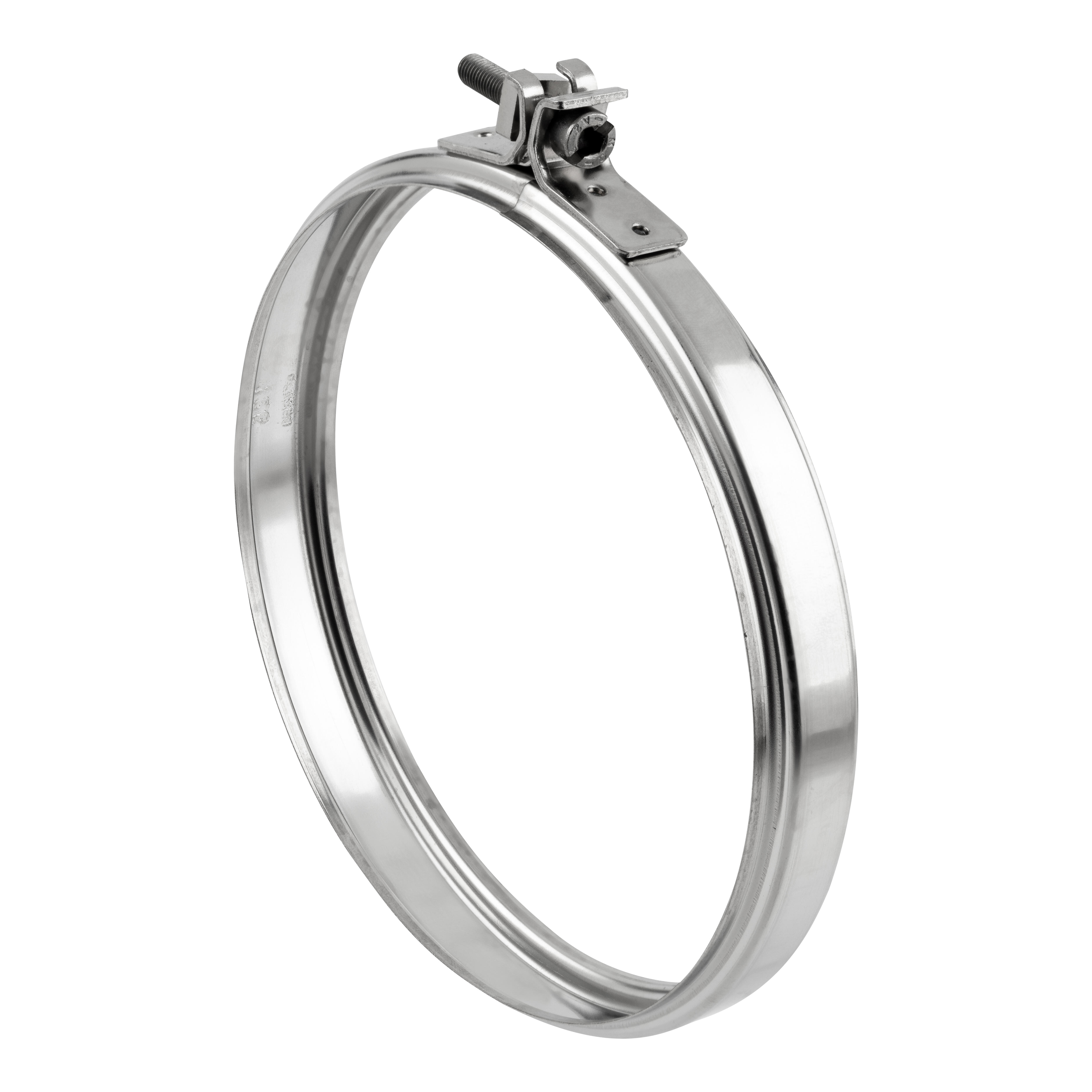 Abrazadera tubo regulable inoxidable 316 para la evacuación de humos de estufas de leña, inserts y hogares. Diámetro simple/doble pared: 125/80 mm.