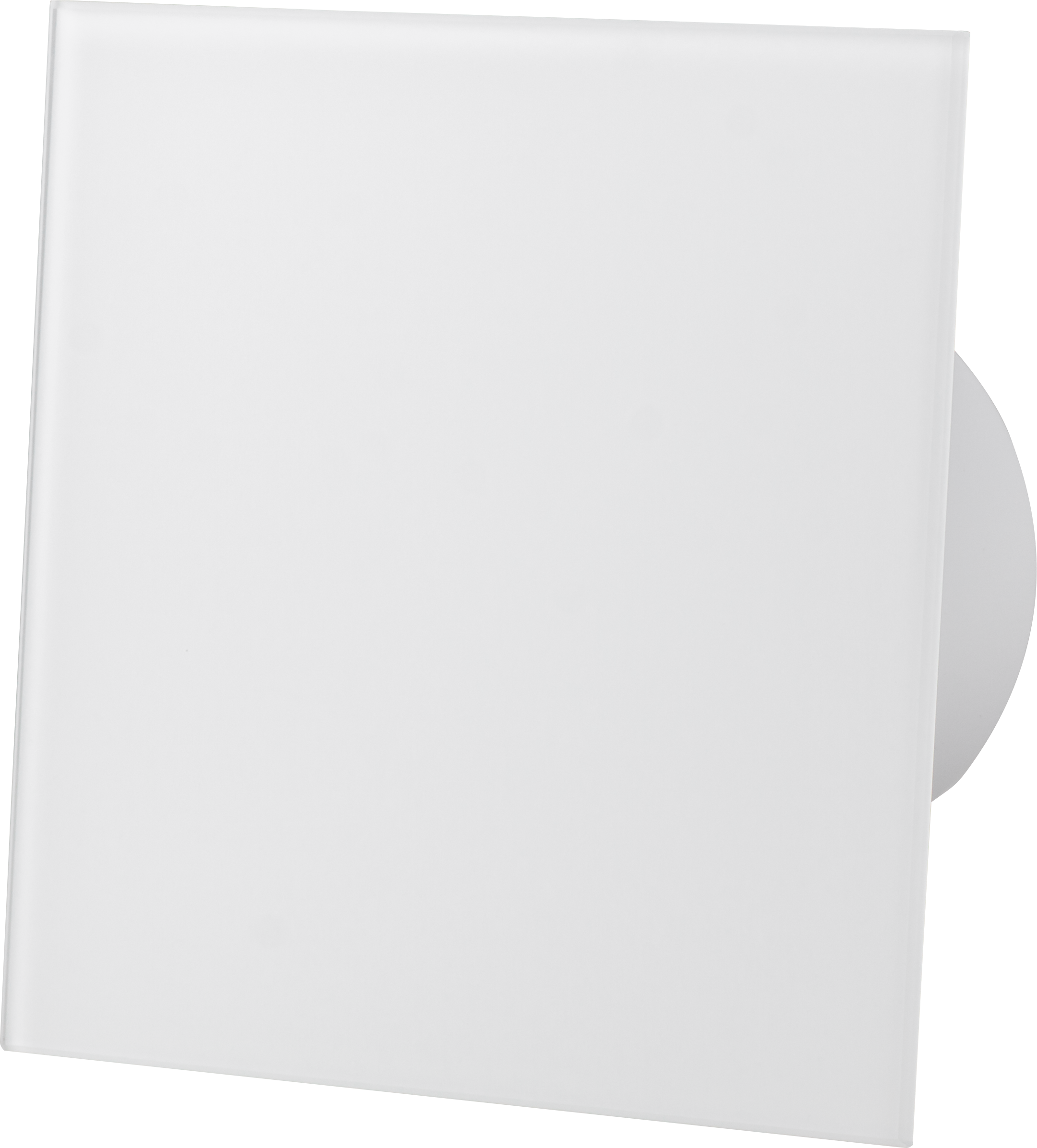 Accesorio frontal de vidrio para extractor de baño decorativo. Acabado blanco mate. Dimensiones 172x172x4mm