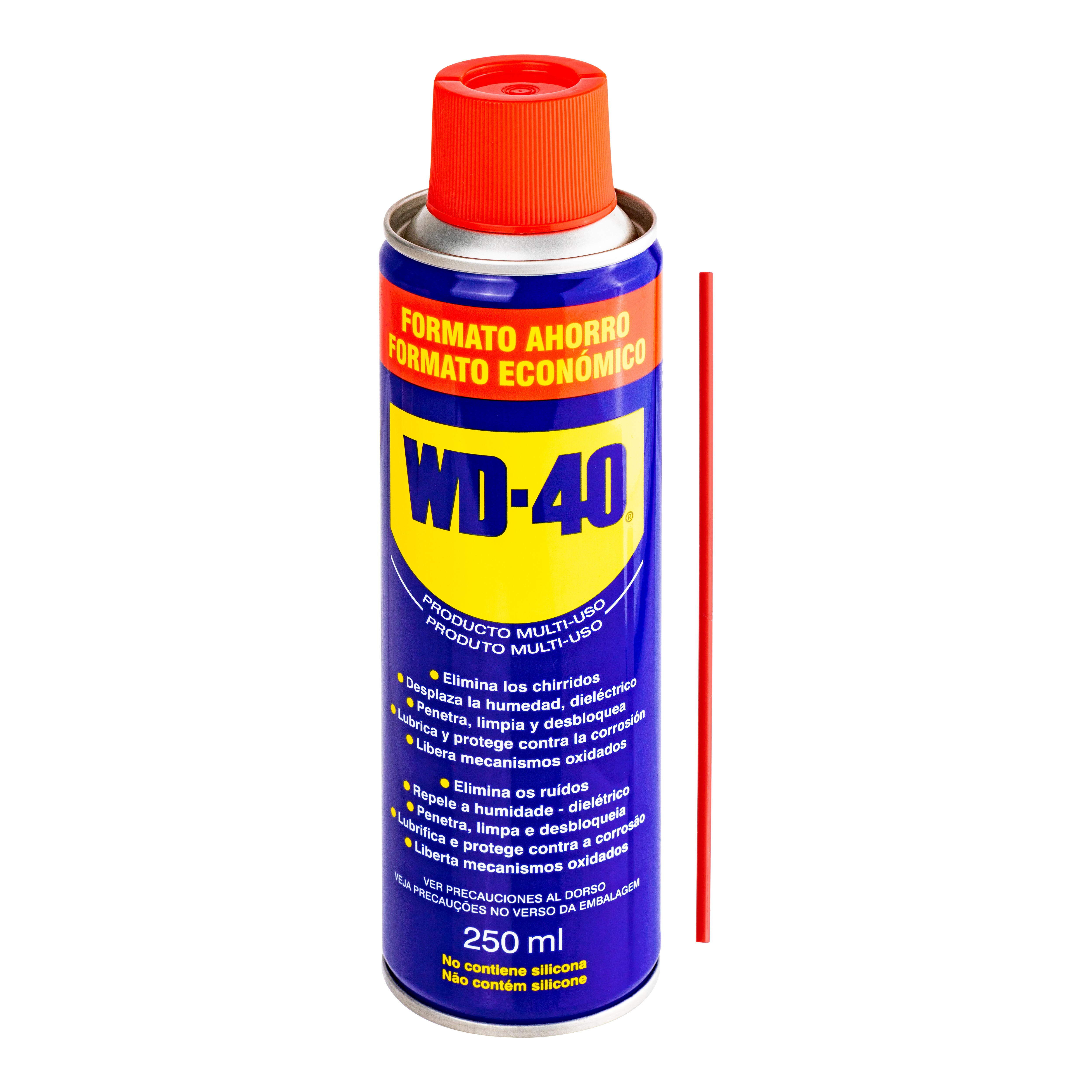 Aceite lubricante multiusos en spray. 250ml. Elimina los chirridos. Desplaza la humedad. Penetra, limpia y desbloquea. Lubrica y protege contra la corrosión.
