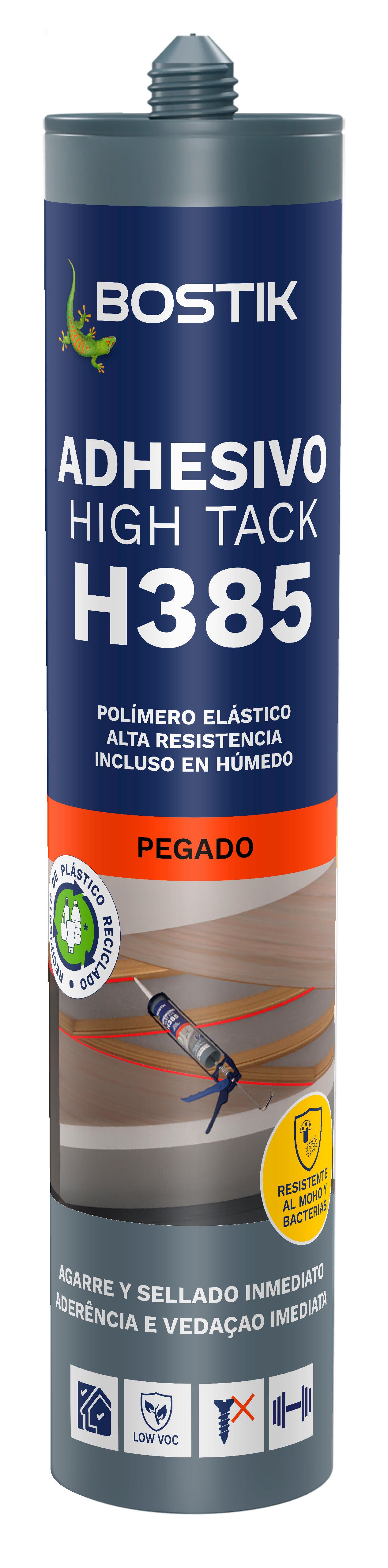 Adhesivo universal de base híbrida de calidad profesional y fácil aplicación con pistola. Debido a su elasticidad, también puede utilizarse como sellador.