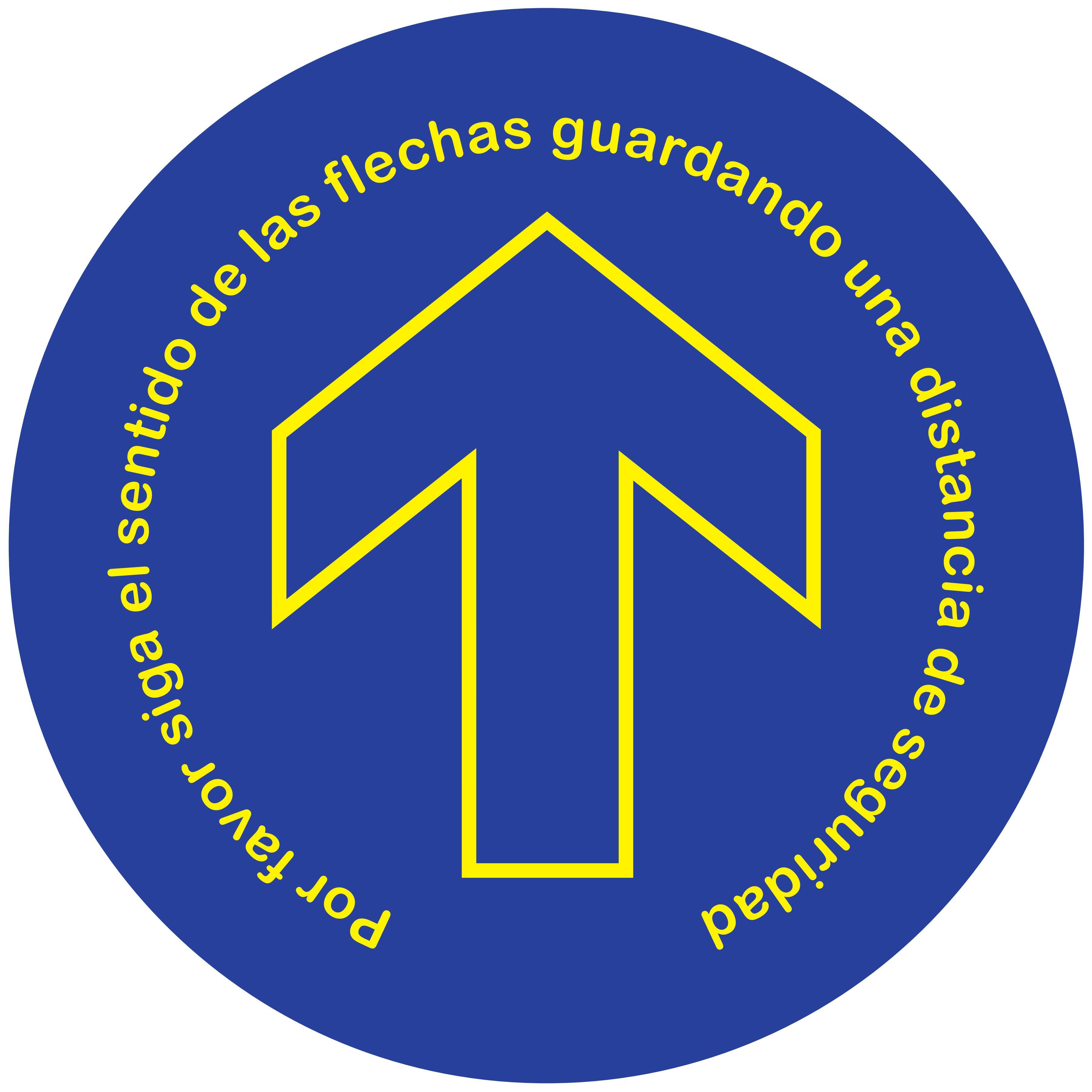 Adhesivo antideslizante FLECHA Texto en Azul Ø300mm