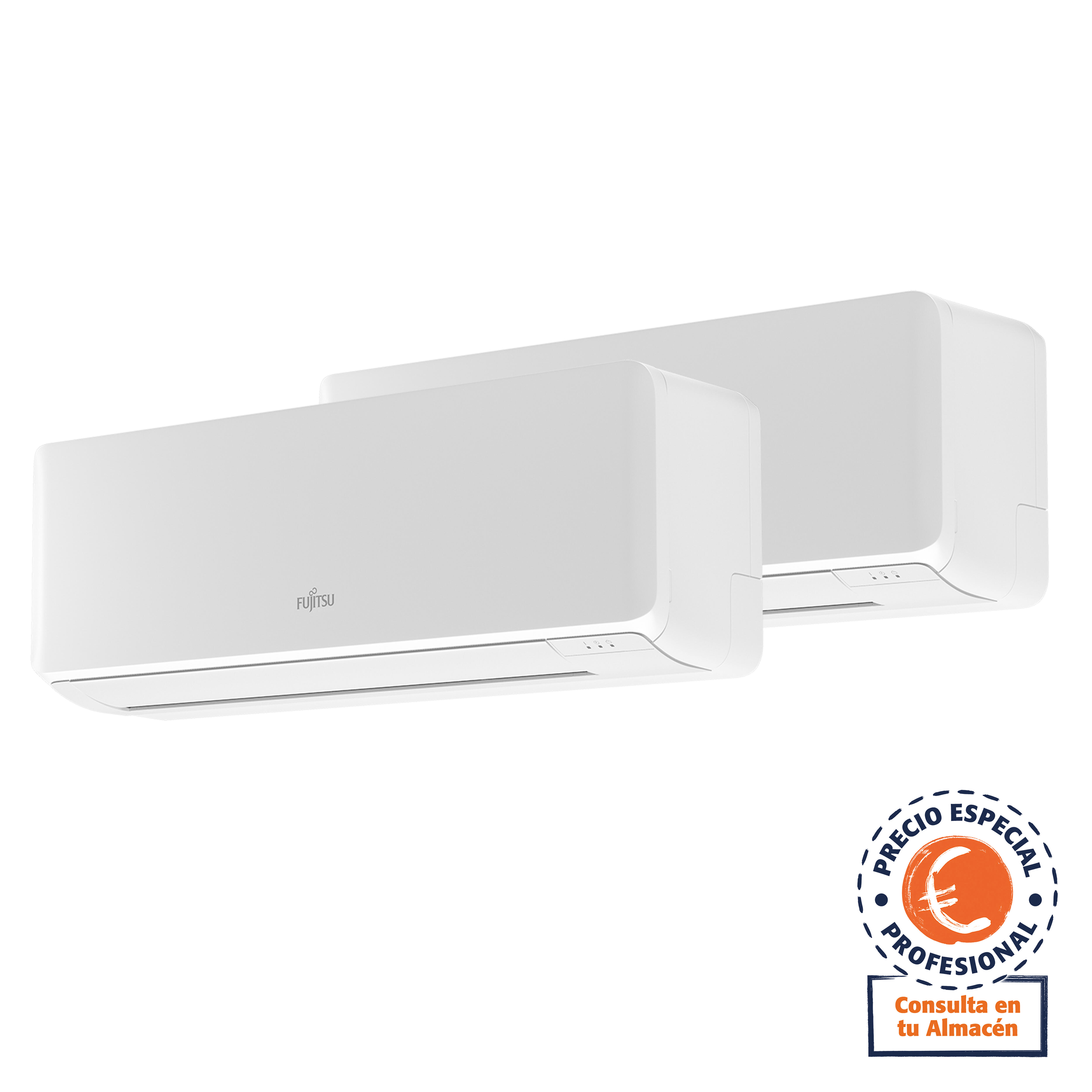 Aire acondicionado multisplit 2150+2924 frigorías de la marca FUJITSU con Wifi. Con bomba de calor. Para 2 estancias de hasta 15m² y 25m2. Tubería de instalación 1/4"-3/8" y gas R32.