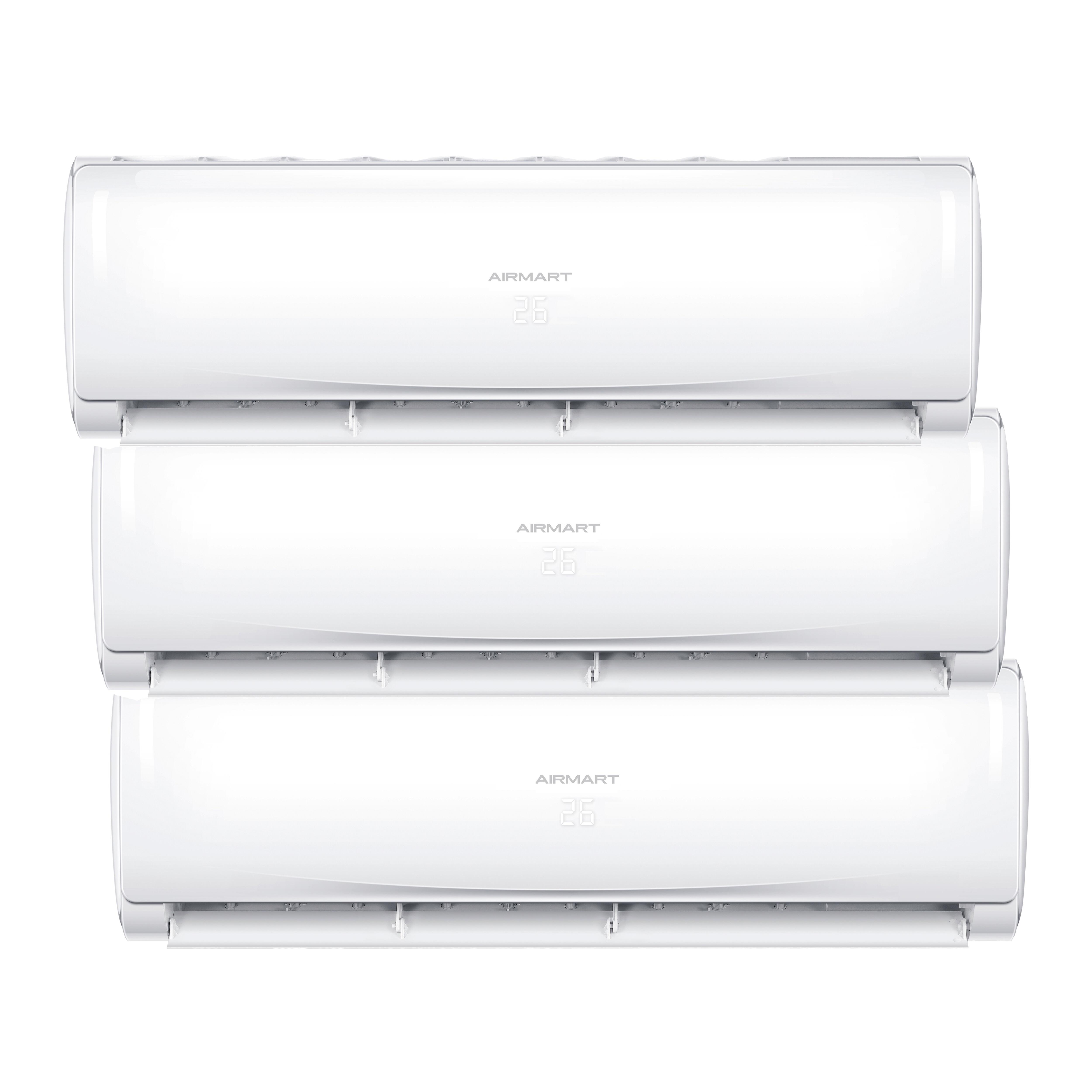 Aire acondicionado multisplit 2X2000+3000 frigorías modelo AIRMART TK5 con Wifi. Con bomba de calor. Para 2 estancias de hasta 15m2 y una de 25m2.Tubería de instalación 1/4"-3/8" y gas R32.