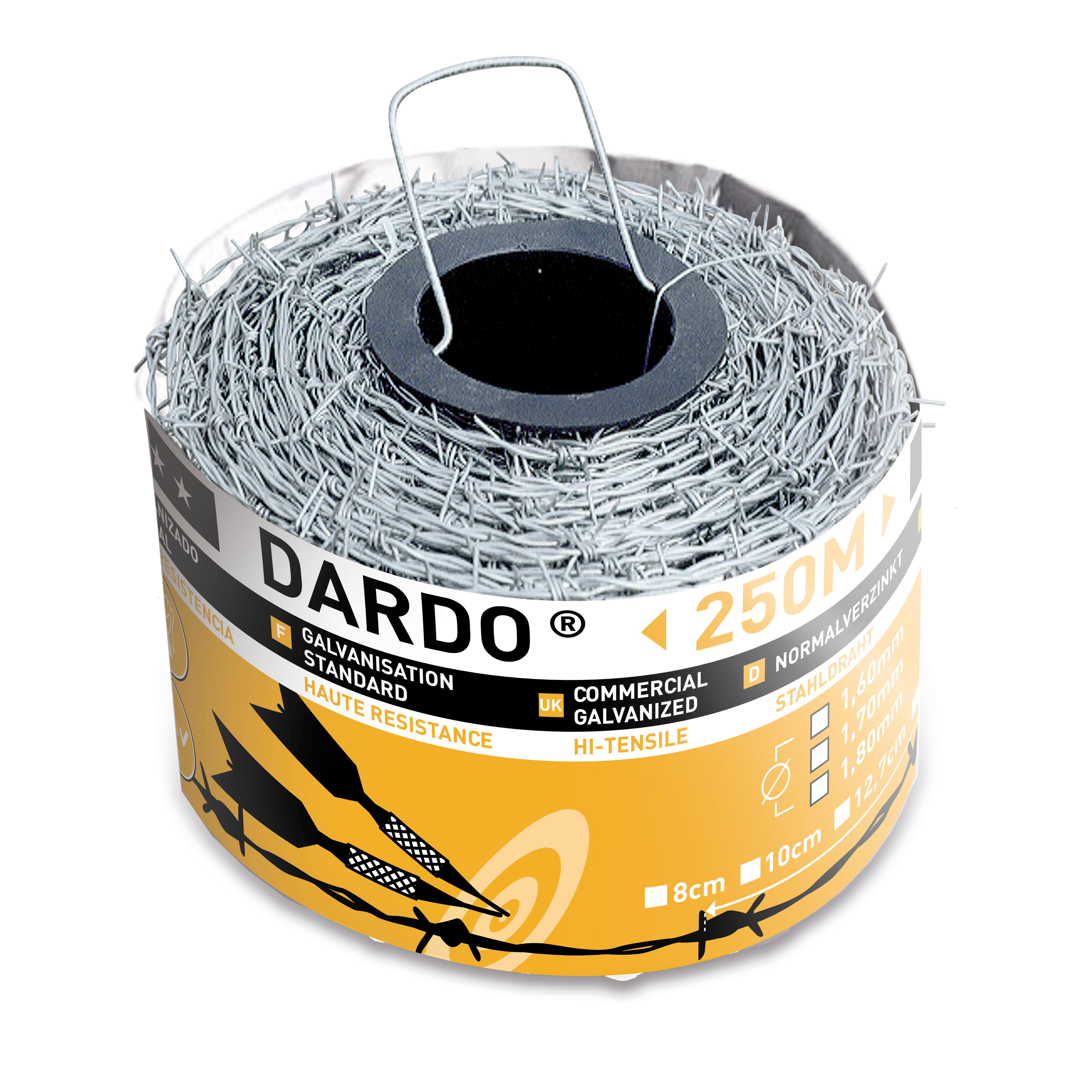 Alambre galvanizado formado por dos alambres de acero duro con torsión alternada . Rollo de 250 m. Carga máxima de rotura 400 lg.