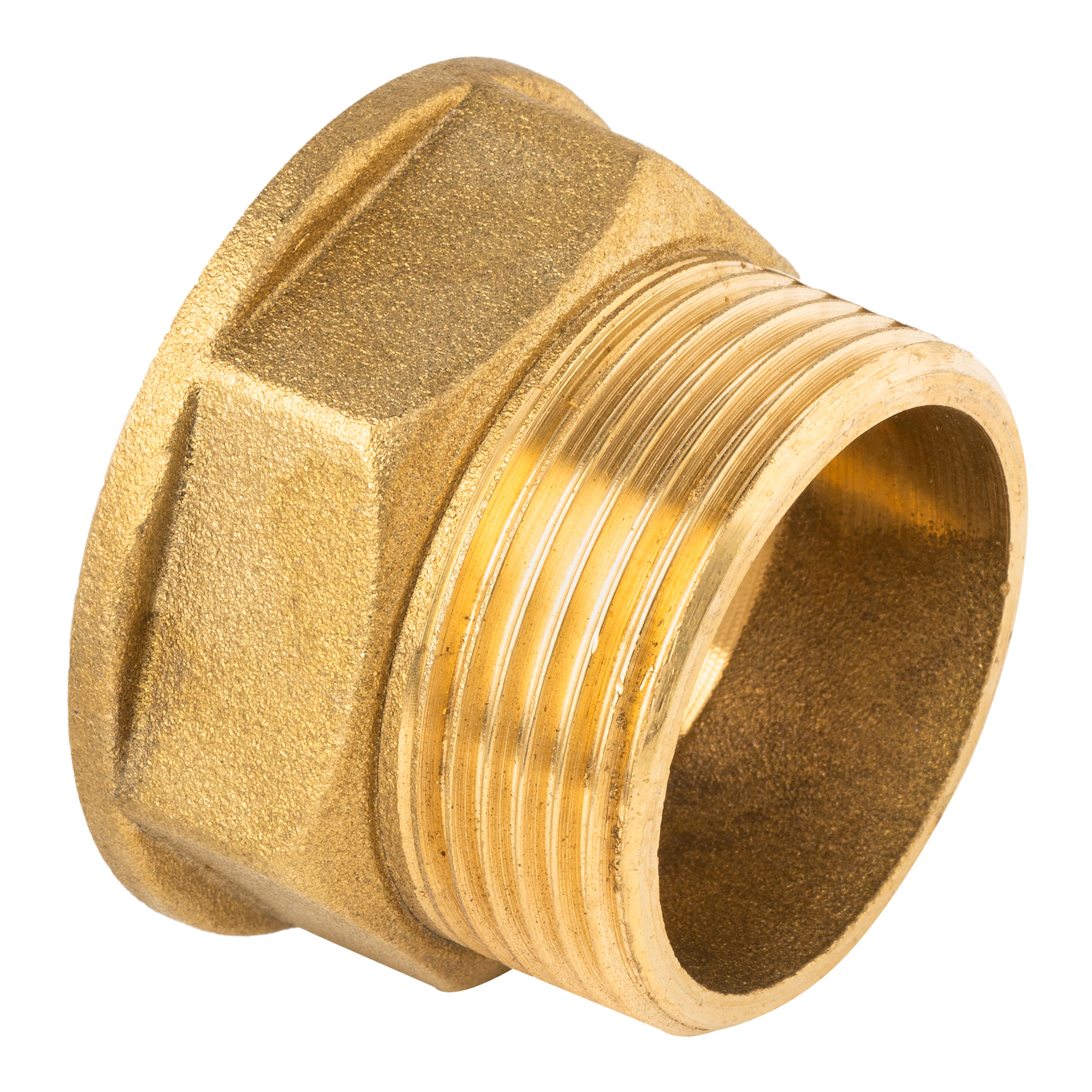 Racor Marsella macho-hembra de latón de diámetro 1 1/4". Normas UNE-EN 1254, EN 248 y EN 816.
