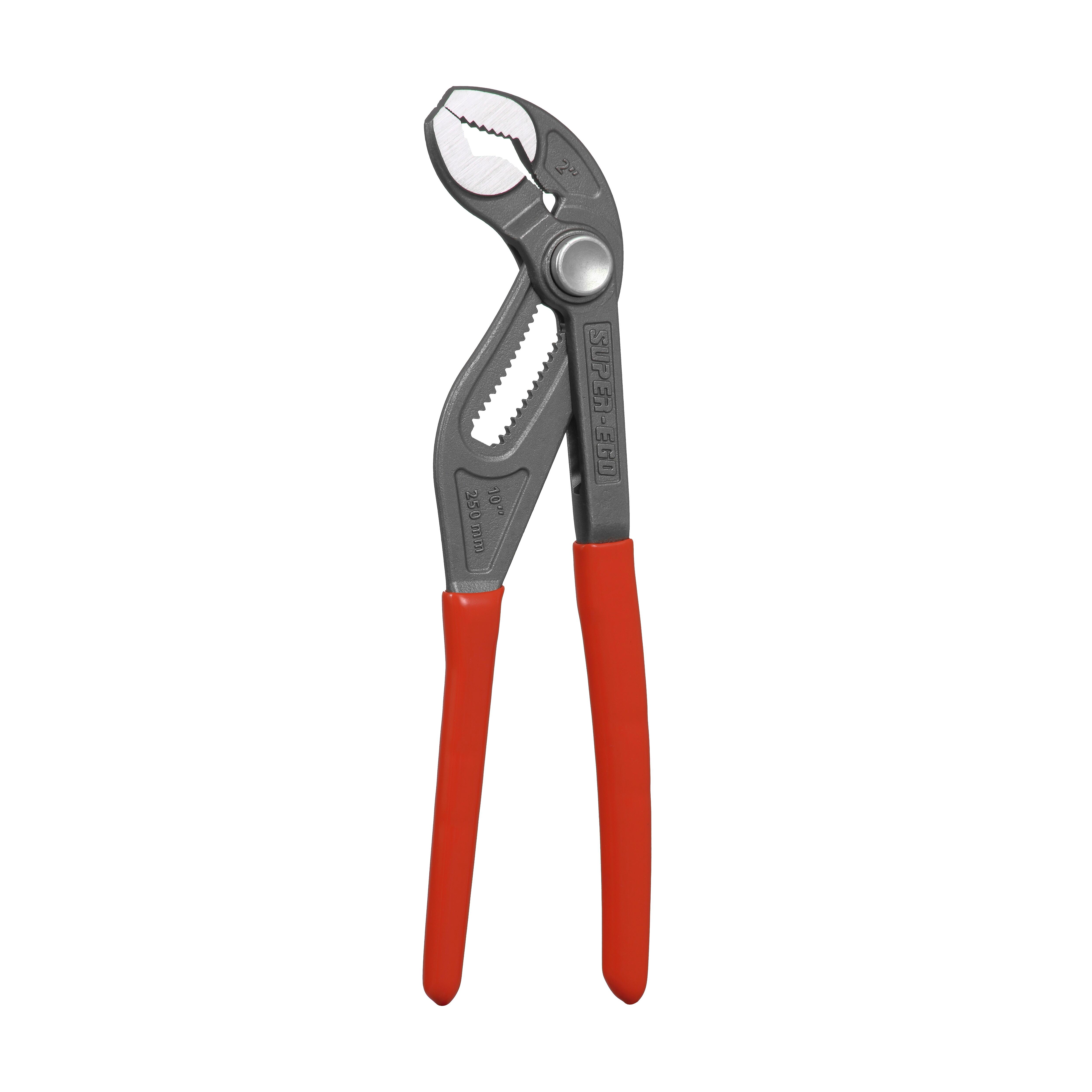 Tenaza de ajuste rápido 1.1/4" Longitud 250mm. Cuerpo forjado en acero cromo-vanadio. Mangos ergonómicos, con goma antideslizamiento. La selección de la apertura es fija, sin posibilidad de desajustes involuntarios. Botón de ajuste rápido y preciso. Doble tratamiento térmico para una durabilidad extrema que asegura una larga vida a las bocas. Diseño de las bocas autoblocante al trabajar con tubo o tuercas hexagonales.