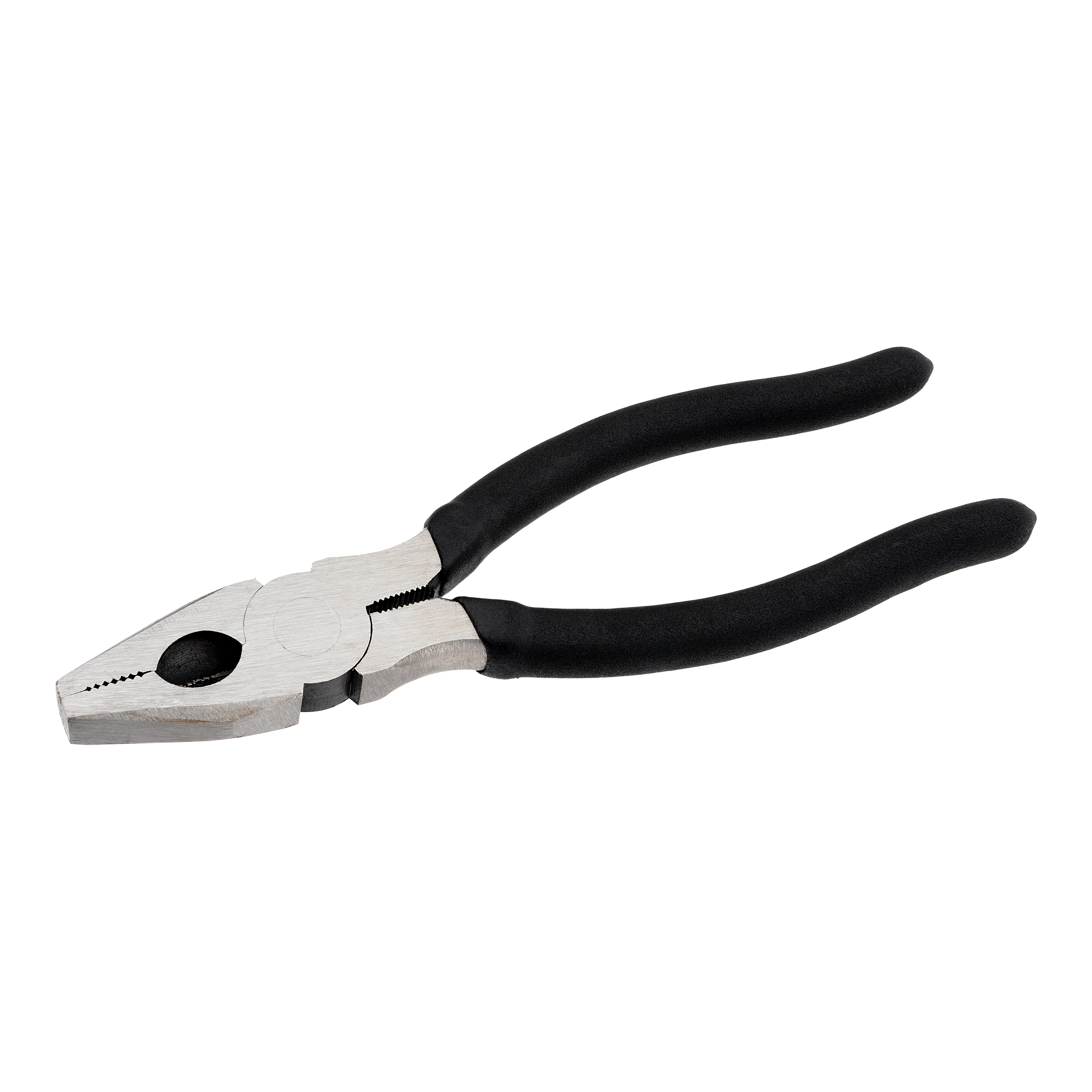Alicate universal 180mm. Fabricado en acero al carbono, pulido. Mango de PVC en color negro. Apertura máxima 25mm.