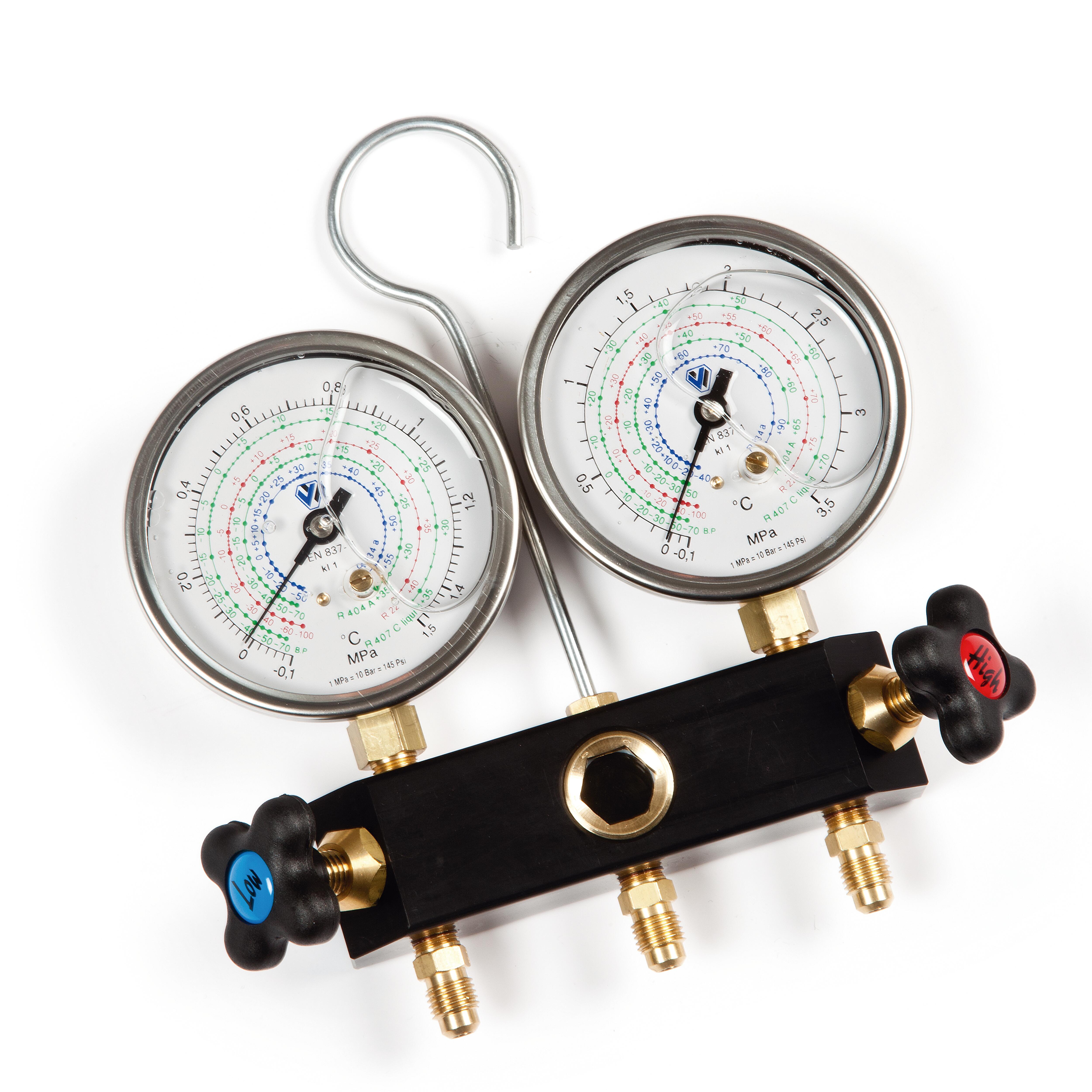Analizador de 2 vías con pistón. Protección anti-colisión para gas R410A - R32. Visor de Ø 80mm