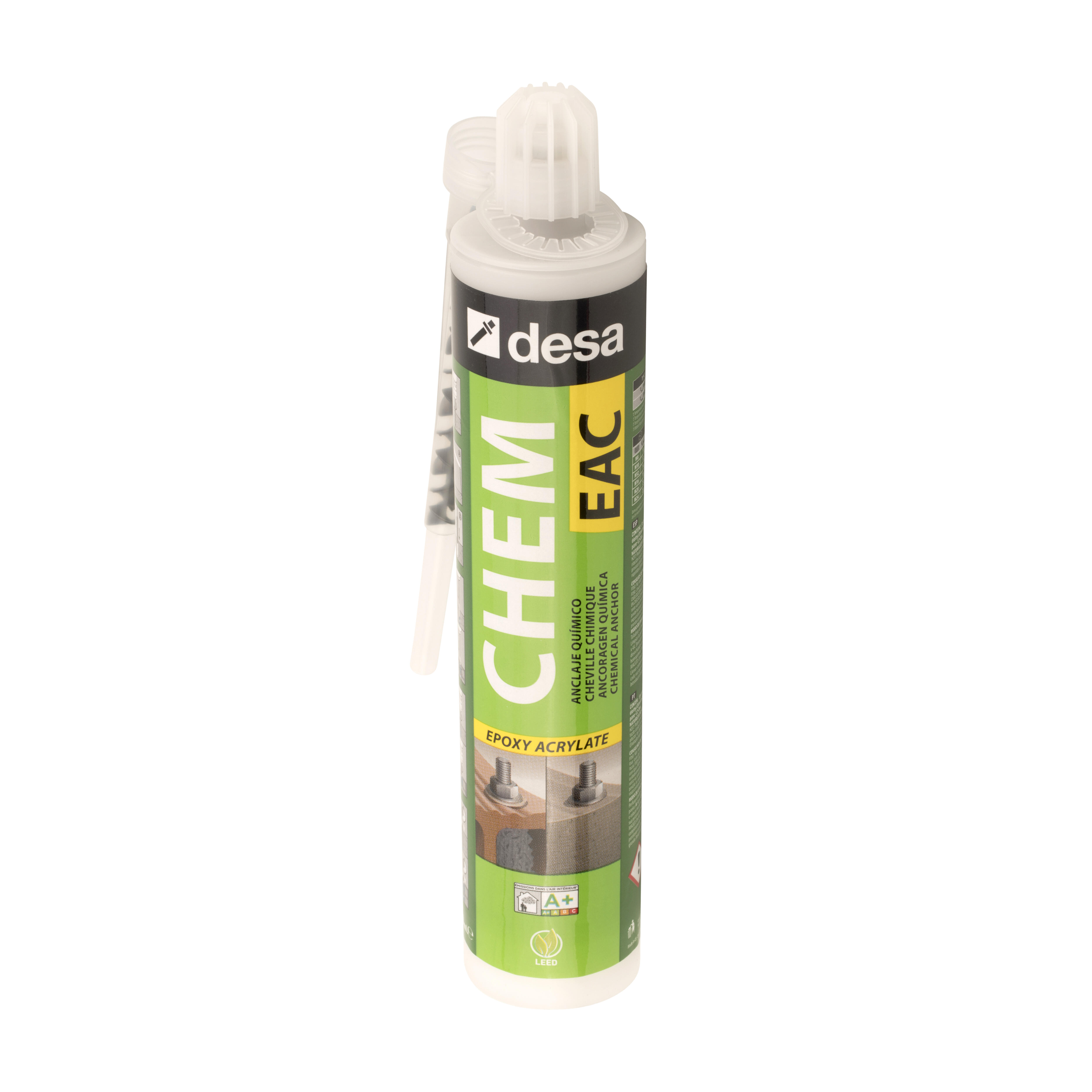 Anclaje químico bicomponente a base de resina de inyección epoxi. Compuesto epoxi más catalizador No ejerce fuerza de expansión Permite aplicaciones cercanas al borde Buenas propiedades mecánicas Curado rápido Fijación adecuada para ambientes humedos (aplicar siempre en seco) Para fijación de varillas roscadas, perfiles de aluminio, rejas de seguridad etc