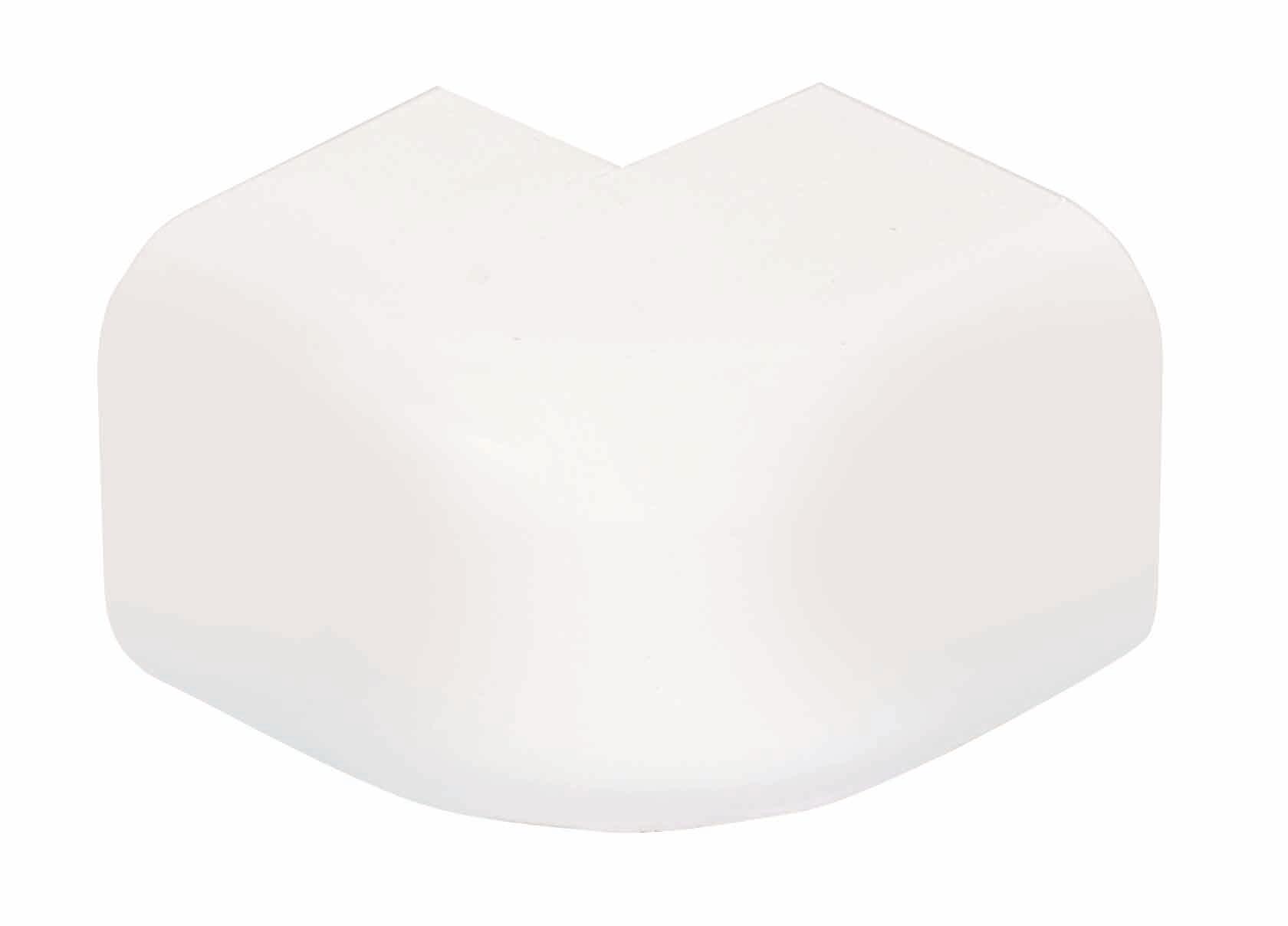 Accesorio para canaleta que permite empalmar en ángulo recto dos canaletas hacia fuera. Color blanco. Material: PVC rígido estabilizado contra los rayos UV. 90X65mm.