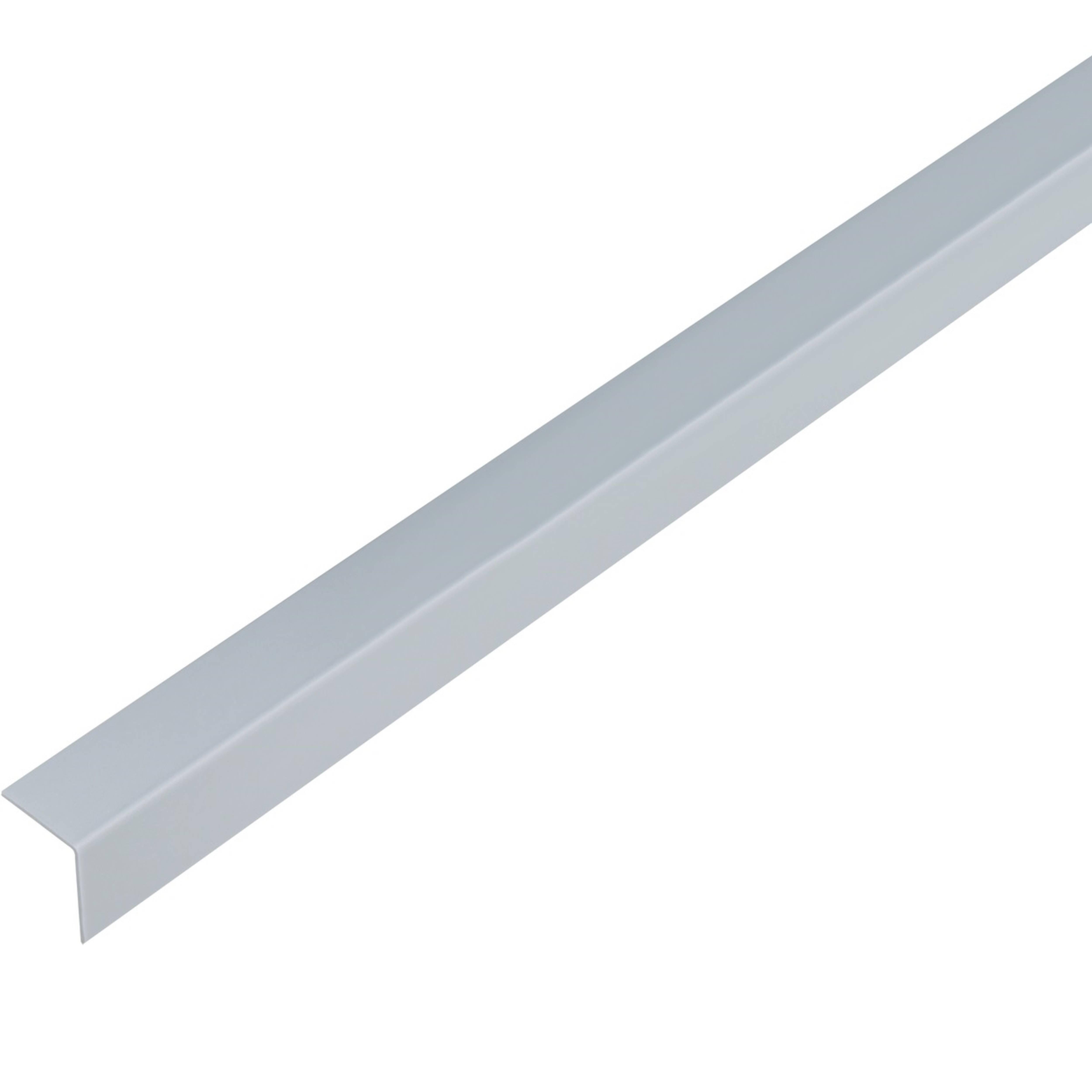 Angulo pvc gris con medidas de alto 20mm, ancho 20mm, grosor 1mm y longitud 2,6m.
