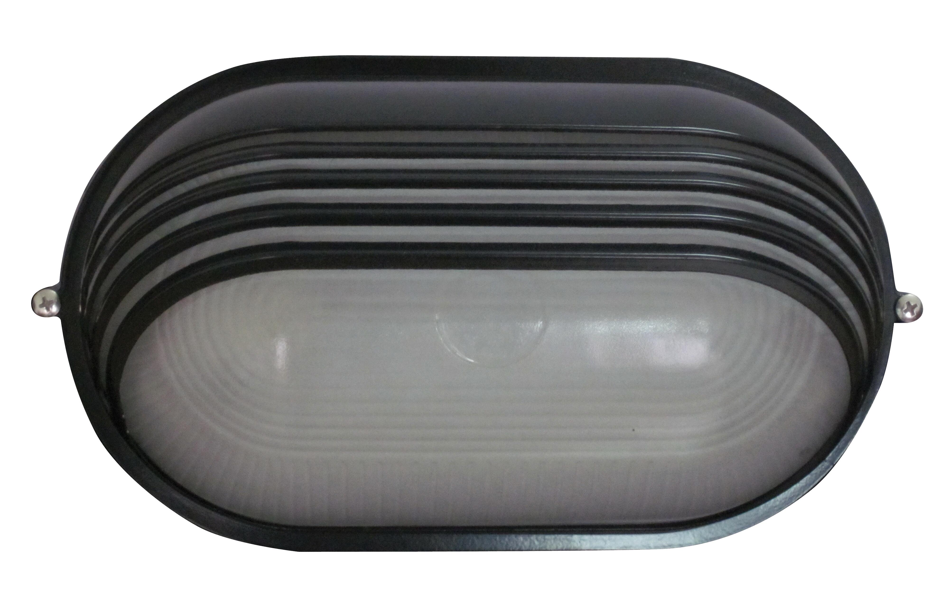 Aplique decorativo de exterior. Ovalado de 27x16cm. Potencia 600w. Casquillo E27. IP44. Acabado negro.