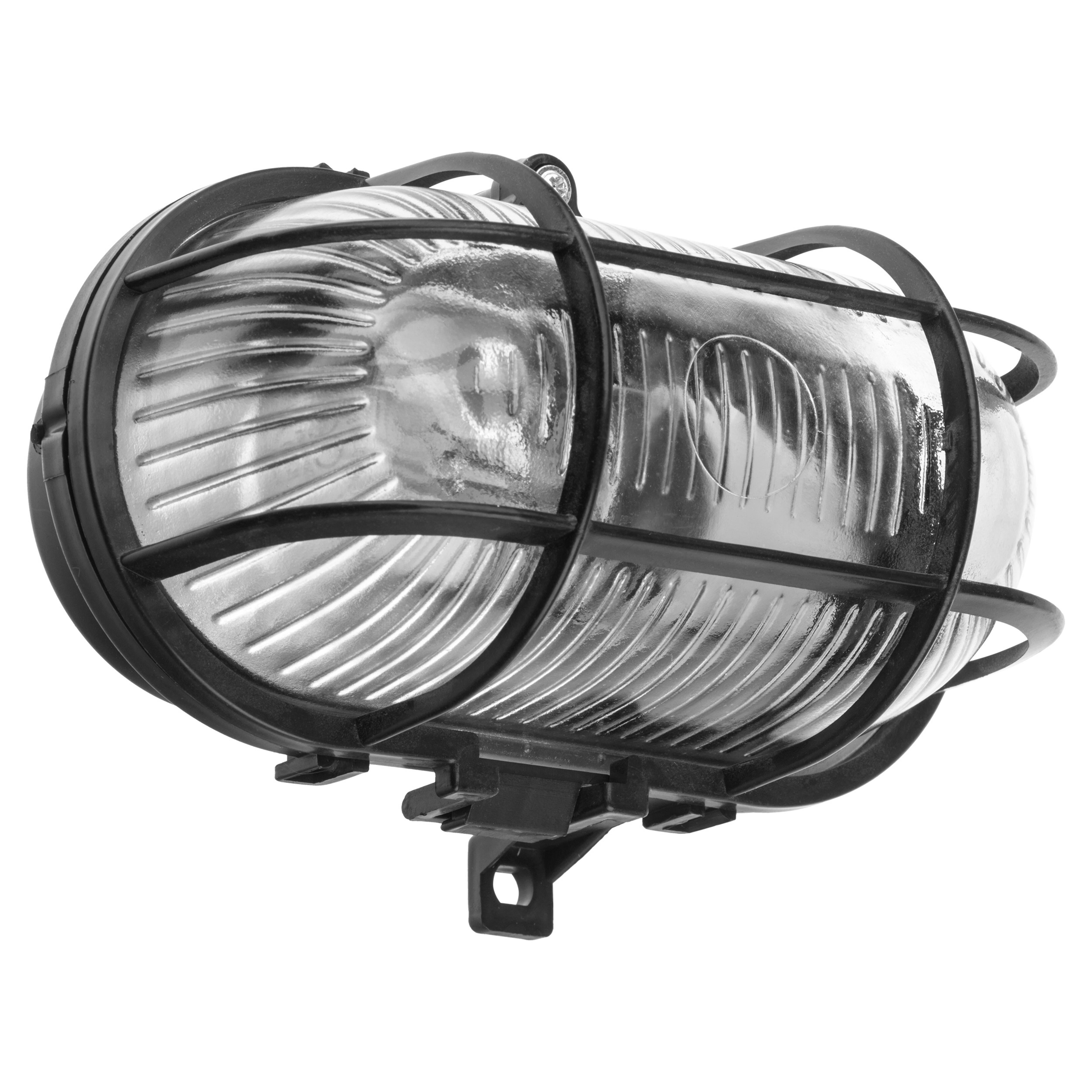Aplique de pared exterior de superficie 60W negro IP44. Ovalado con rejilla 9.5x18x12.5.