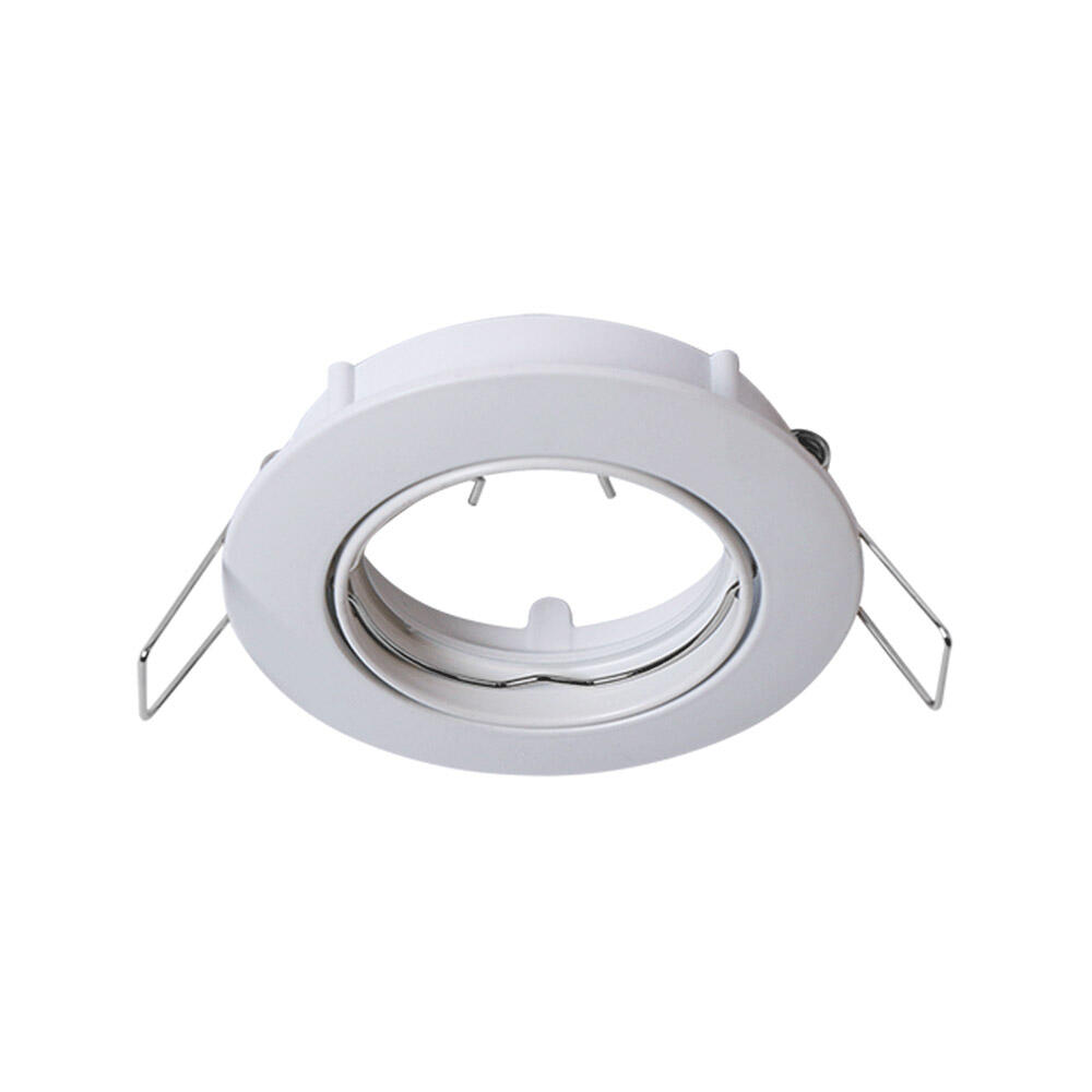 Aro empotrable redondo basculante fabricado en aluminio y acabado blanco. Incluye base GU10 cerámica.