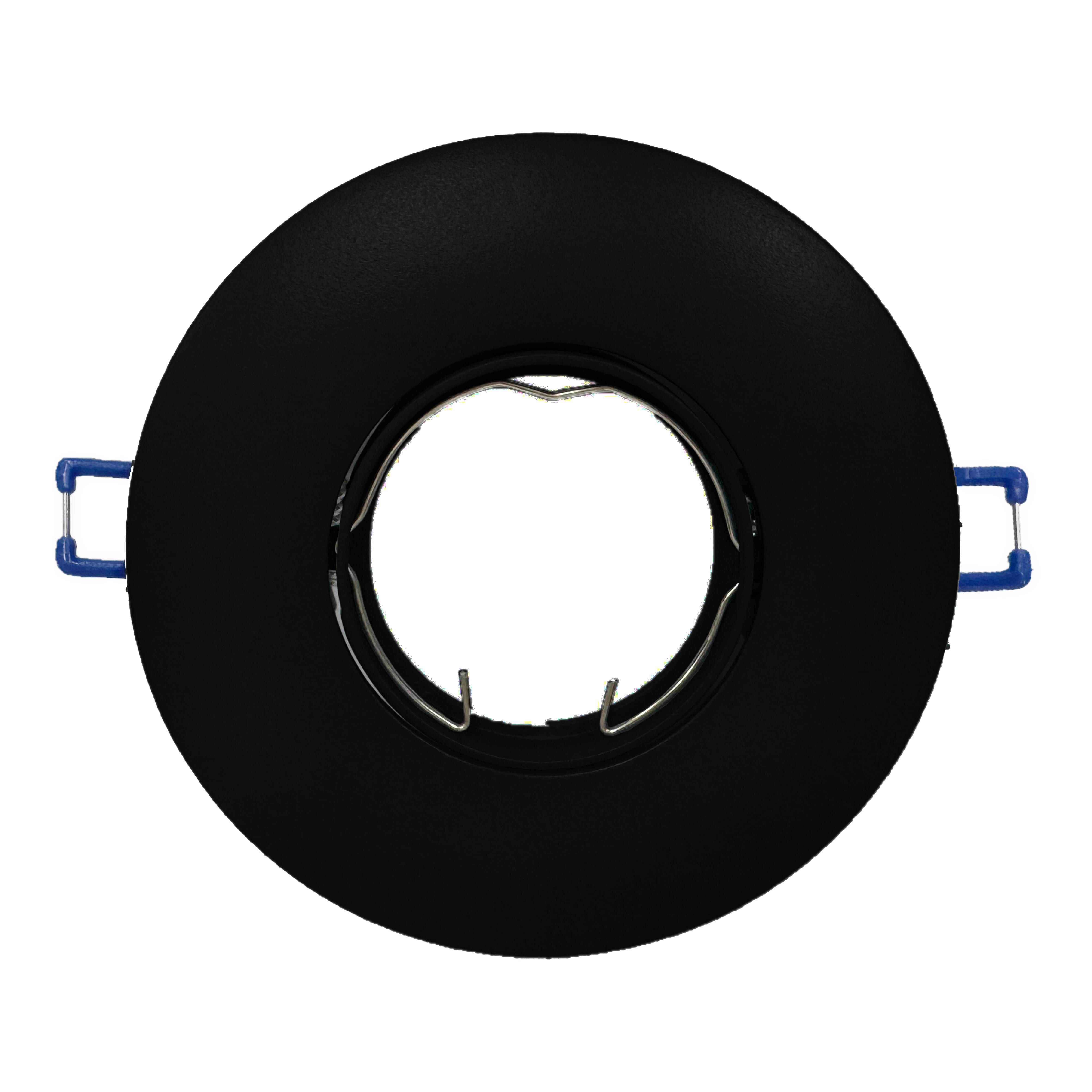 Aro empotrable fabricado en aluminio con forma circular, basculante con diámetro 110mm. Acabado negro.