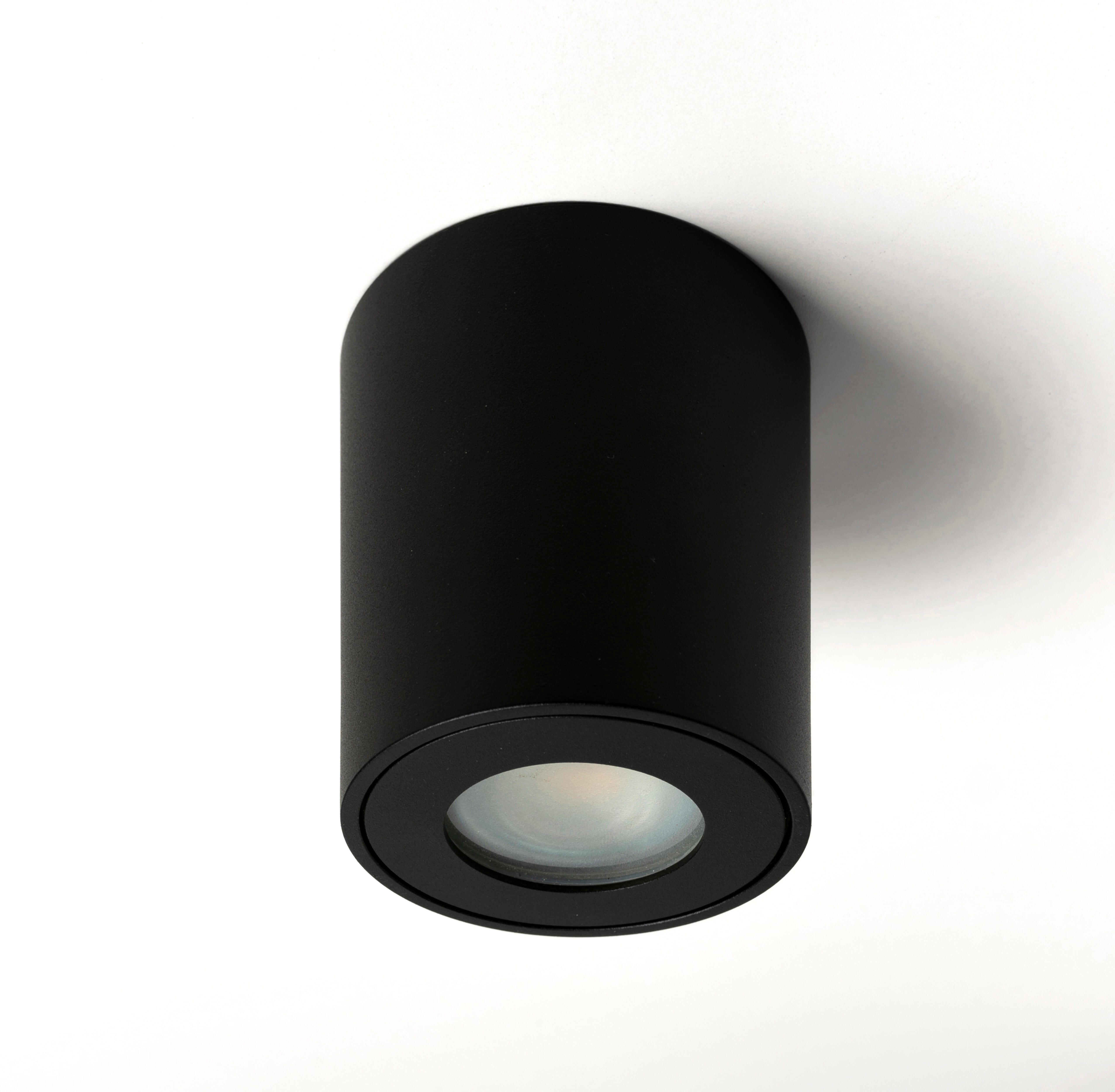 Aro circular de superficie fijo con cristal para lámpara GU10 (no incluída) diseño bajo (85mm), fabricado en aluminio y acabado negro. Apto para cualquier estancia en interiores, residencial y comercio. IP44.