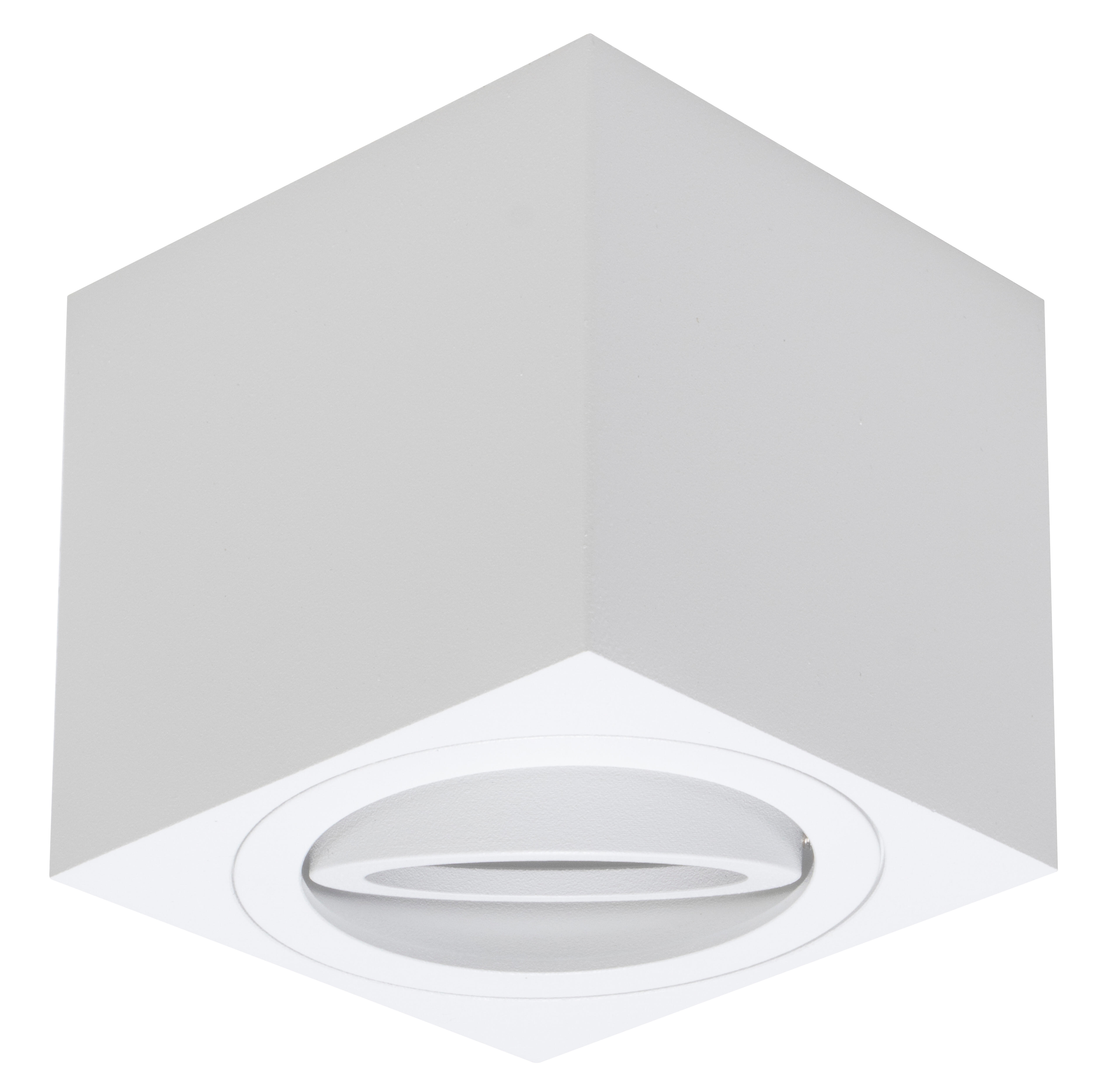 Aro cuadrado de superficie basculante para lámpara GU10 (no incluída) diseño bajo (85mm), fabricado en aluminio y acabado blanco. Apto para cualquier estancia en interiores, residencial y comercio. IP20.