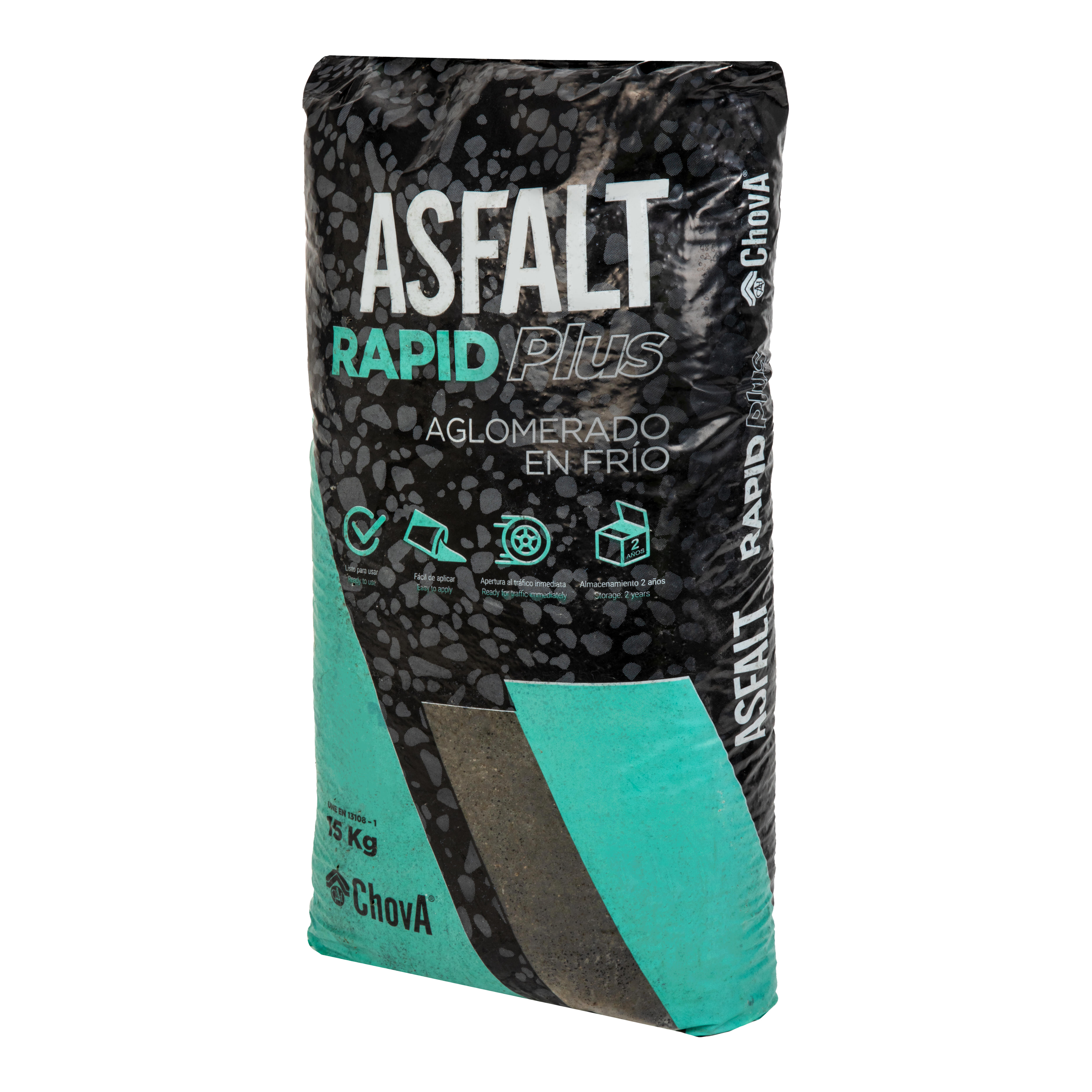 Aglomerado asfáltico ASFALT RAPID PLUS para realizar pequeñas reparaciones en pavimentos de hormigón y asfalto .Puede ser aplicado en frío y sin la necesidad de aplicar con maquinaria pesada. No necesita de imprimación ni sellado del área a tratar. Permite la apertura al tráfico inmediato de cualquier tonelaje. Es un producto perfecto para aplicar en baches, zanjas, reparaciones de carreteras, urbanizaciones y pequeñas obras. Una vez colocado es duradero, estable y flexible. Cada bote de 15 kg da un rendimiento de 0,75 cm/m² en capa de 3 a 5 cm.