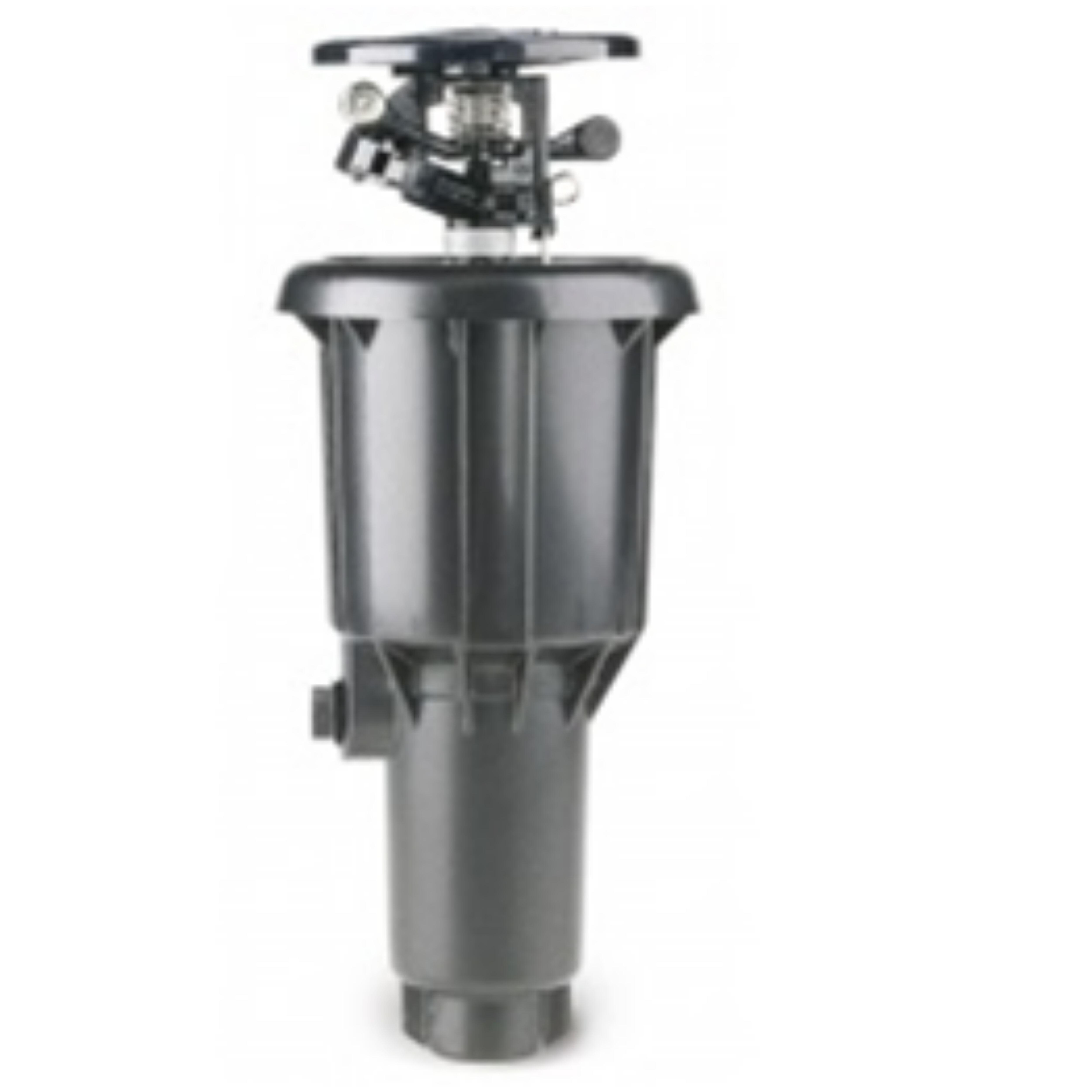 Aspersor emergente de impacto de círculo completo y sectorial pensados para trabajar a baja presión y caudal. Características : • Altura de emergencia 7,6 cm. • Cambio de toberas sin necesidad de herramientas.• Brazo de impacto con doble contrapeso • Brazo anti-salpicaduras • Tornillo de ajuste del chorro • Palanca de inversión de giro que permite el riego sectorial • Doble entrada rosca hembra: ½” y ¾” •Toma lateral hembra: ½” • Mantenimiento por la parte superior del aspersor. ESPECIFICACIONES: • Alcance: 6,7 a 13,7 metros. • Presión: 1,7 a 4,1 bares. • Caudal: 0,34 a 1,91 m3/h.