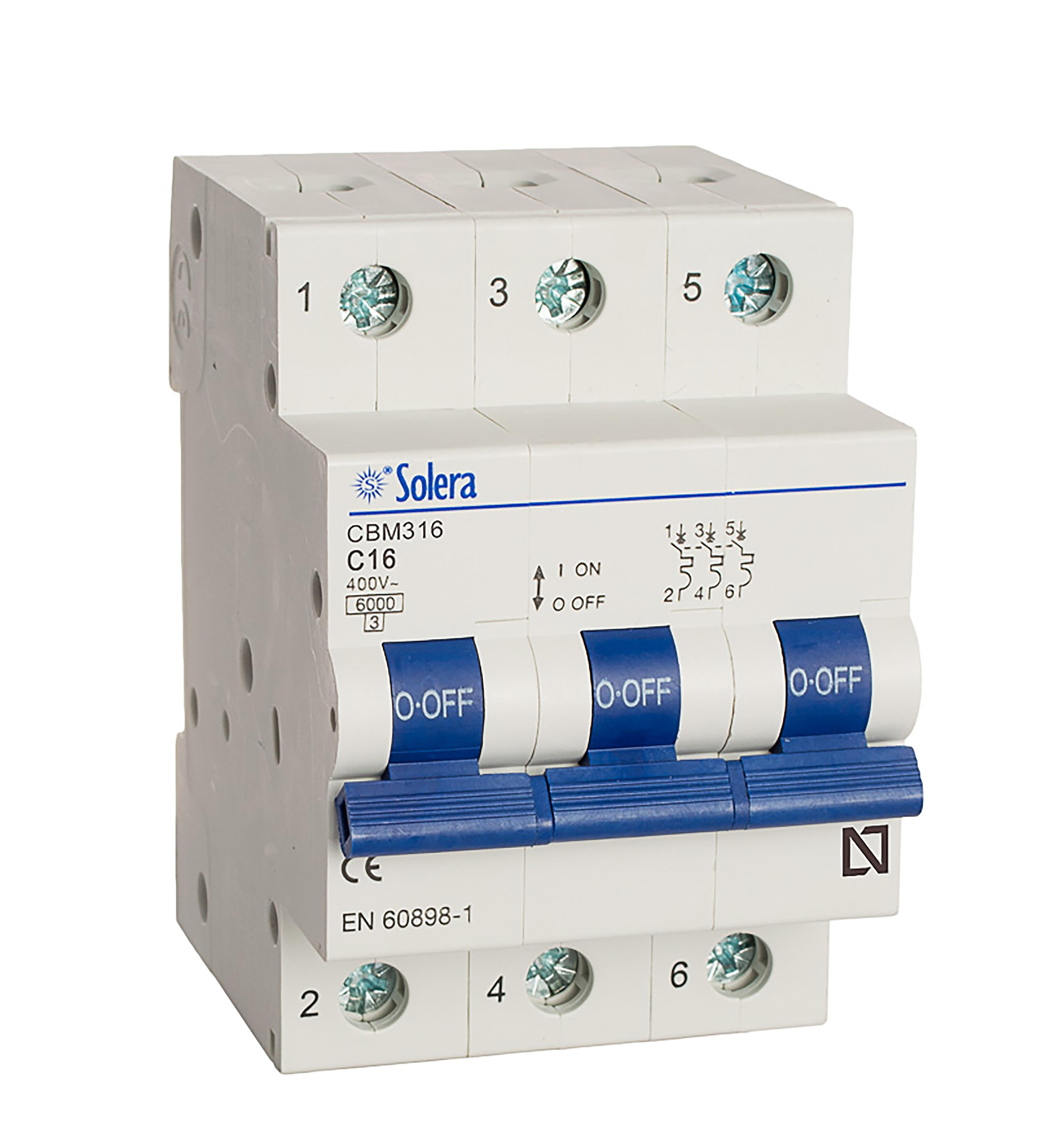 Interruptor automático magnetotérmico diseñado para el sector residencial y terciario. Este modelo posee un poder de corte de 6ka, así como una corriente alterna de 240/415vac y una tensión con una frecuencia que oscila entre 50-60hz. Además, cuenta con tres polos, tres módulos, una intensidad de 16A, curva c. Su diseño cuenta con respiraderos que mejoran las condiciones de seguridad del producto, sistema de sujeción sin muelle de retroceso y una mejora en la conexión con peines. Automático. Certificado por AENOR.