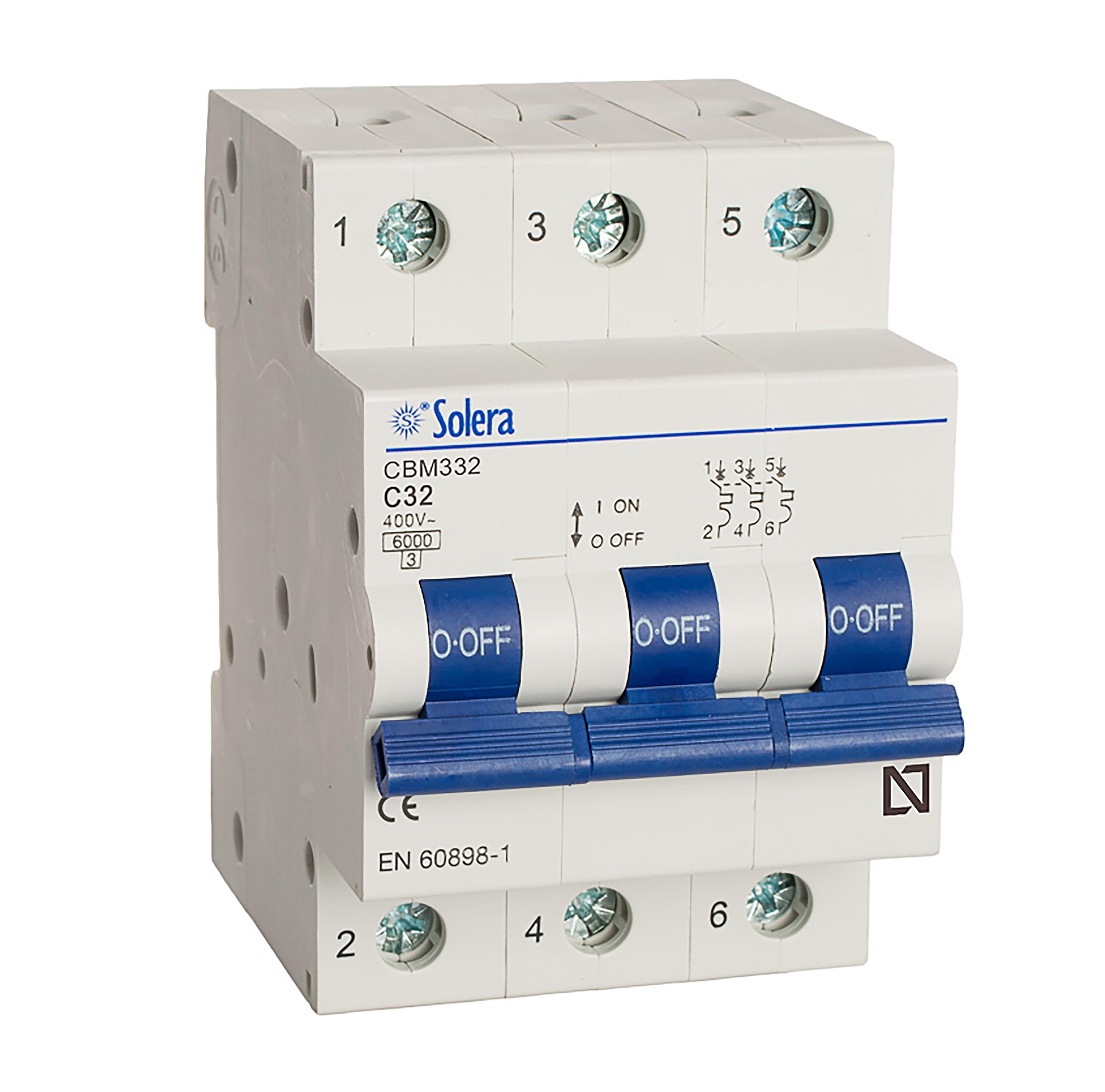 Interruptor automático magnetotérmico diseñado para el sector residencial y terciario. Este modelo posee un poder de corte de 6ka, así como una corriente alterna de 240/415vac y una tensión con una frecuencia que oscila entre 50-60hz. Además, cuenta con tres polos, tres módulos, una intensidad de 32A, curva c. Su diseño cuenta con respiraderos que mejoran las condiciones de seguridad del producto, sistema de sujeción sin muelle de retroceso y una mejora en la conexión con peines. Automático. Certificado por AENOR.
