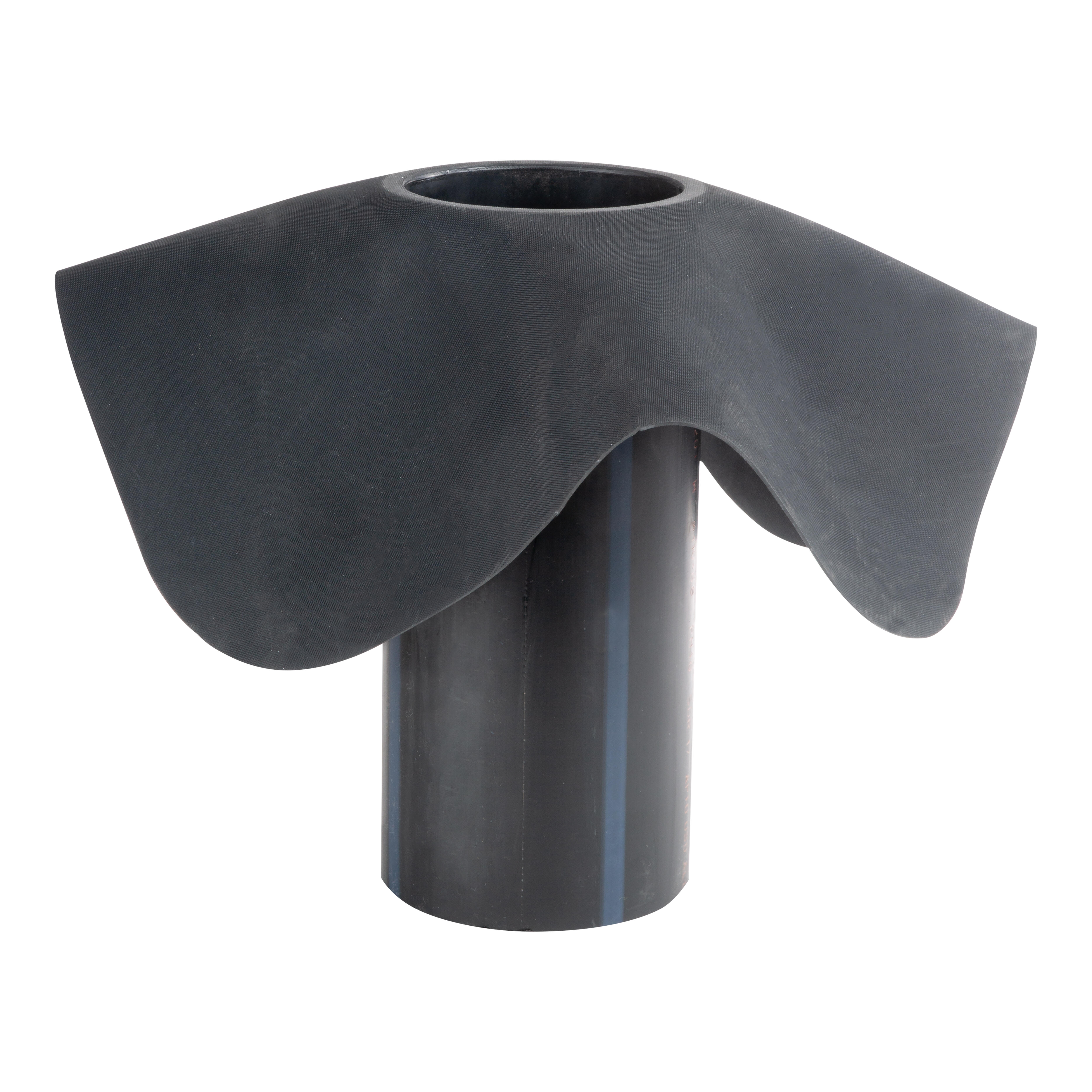 Bajante de epdm con tubo de polietileno de alta densidad termofusionado a un faldón de lámina epdm indicado para rematar los desagües. Diámetro exterior del tubo 110 mm.