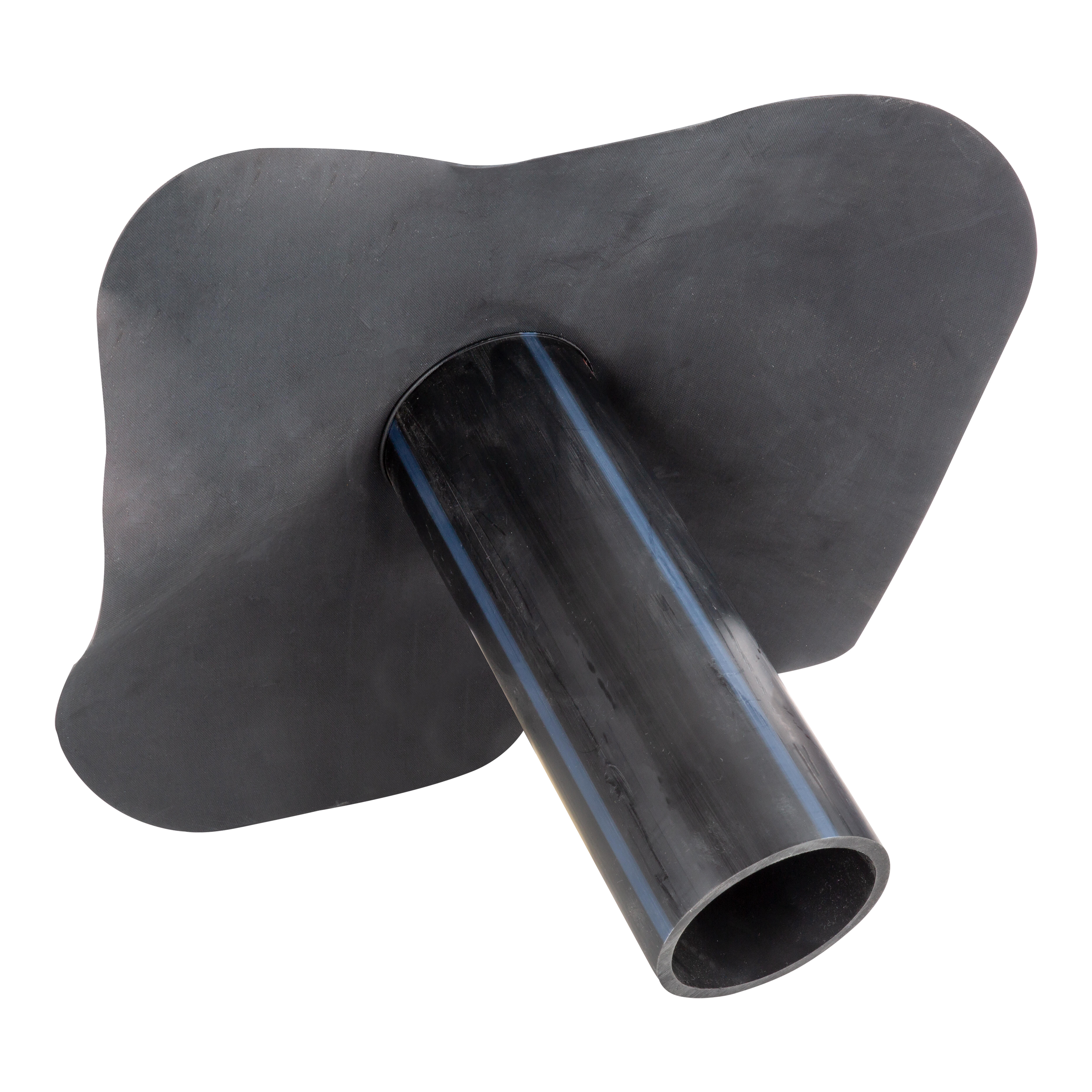 Bajante de epdm con tubo de polietileno de alta densidad termofusionado a un faldón de lámina epdm indicado para rematar los desagües. Diámetro exterior del tubo 90 mm.
