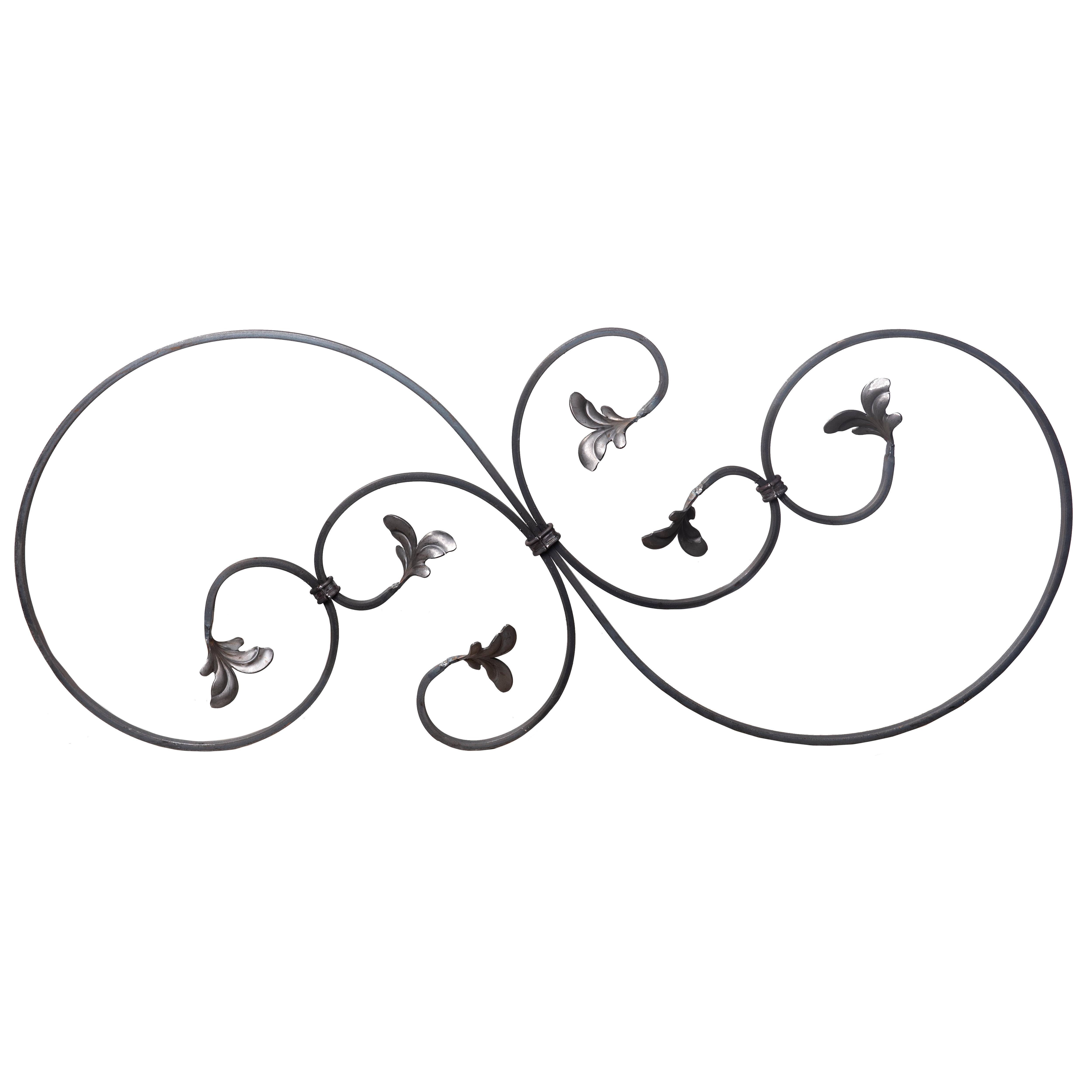 Barra de hierro forjado floreado con medidas de alto 870mm, ancho 350mm y sección 12x6mm.