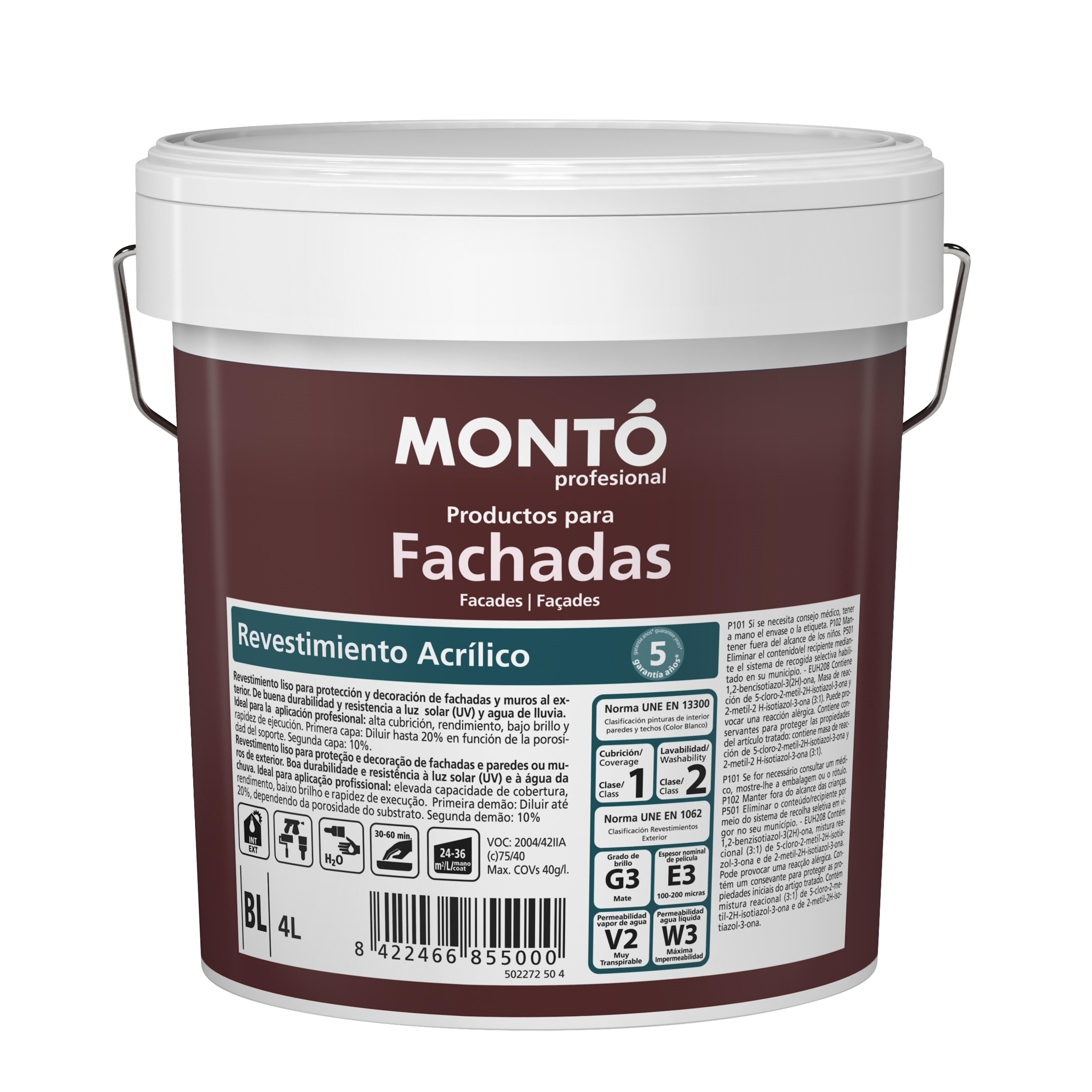 BASE PINTURA FACHADAS ACRÍLICO MATE MONTO 4L TONOS INTENSOS