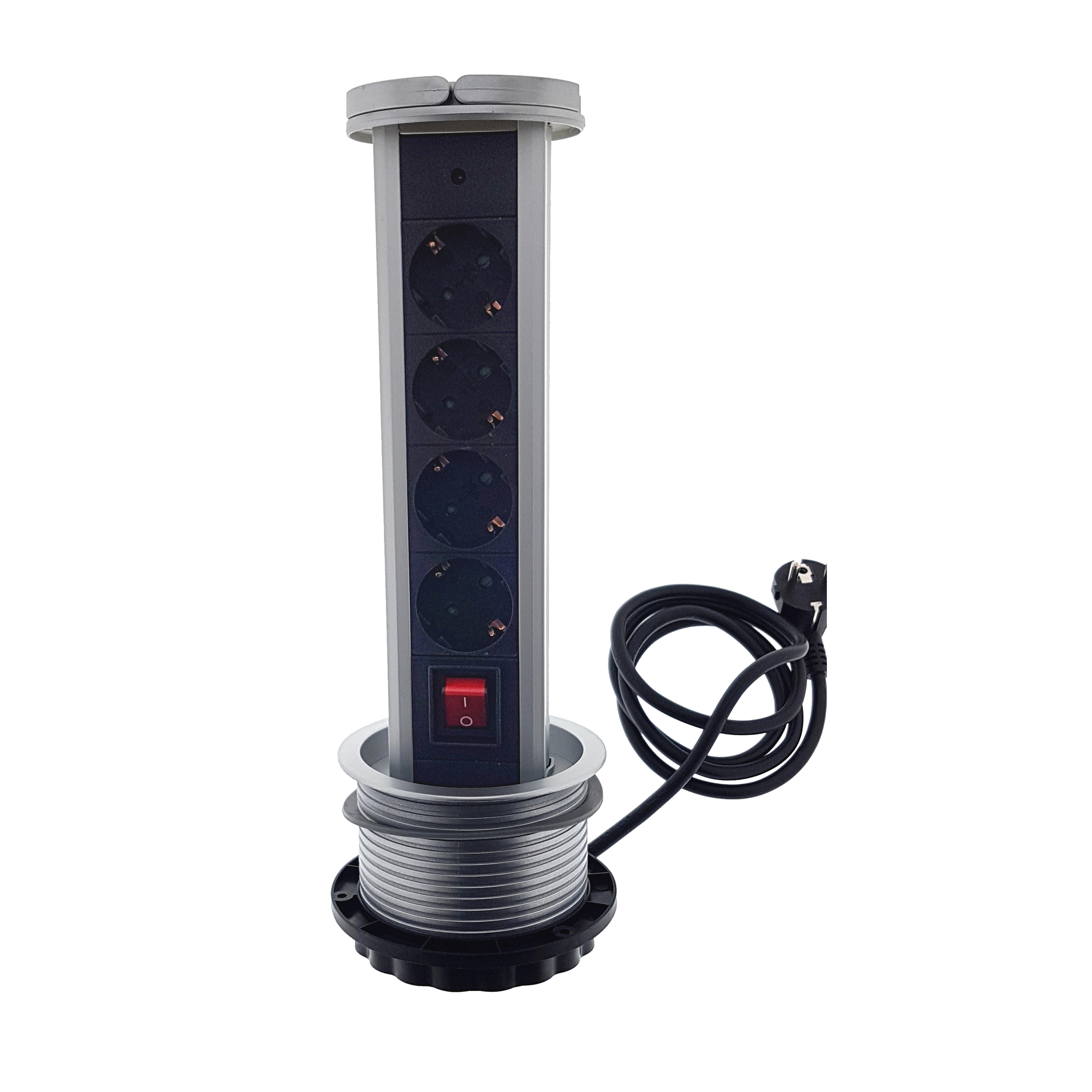 Base múltiple retractil 4t con protec para iso interior. Potencia máxima 3680w. Pulsando sobre la base sacalos el bloque de tomas.