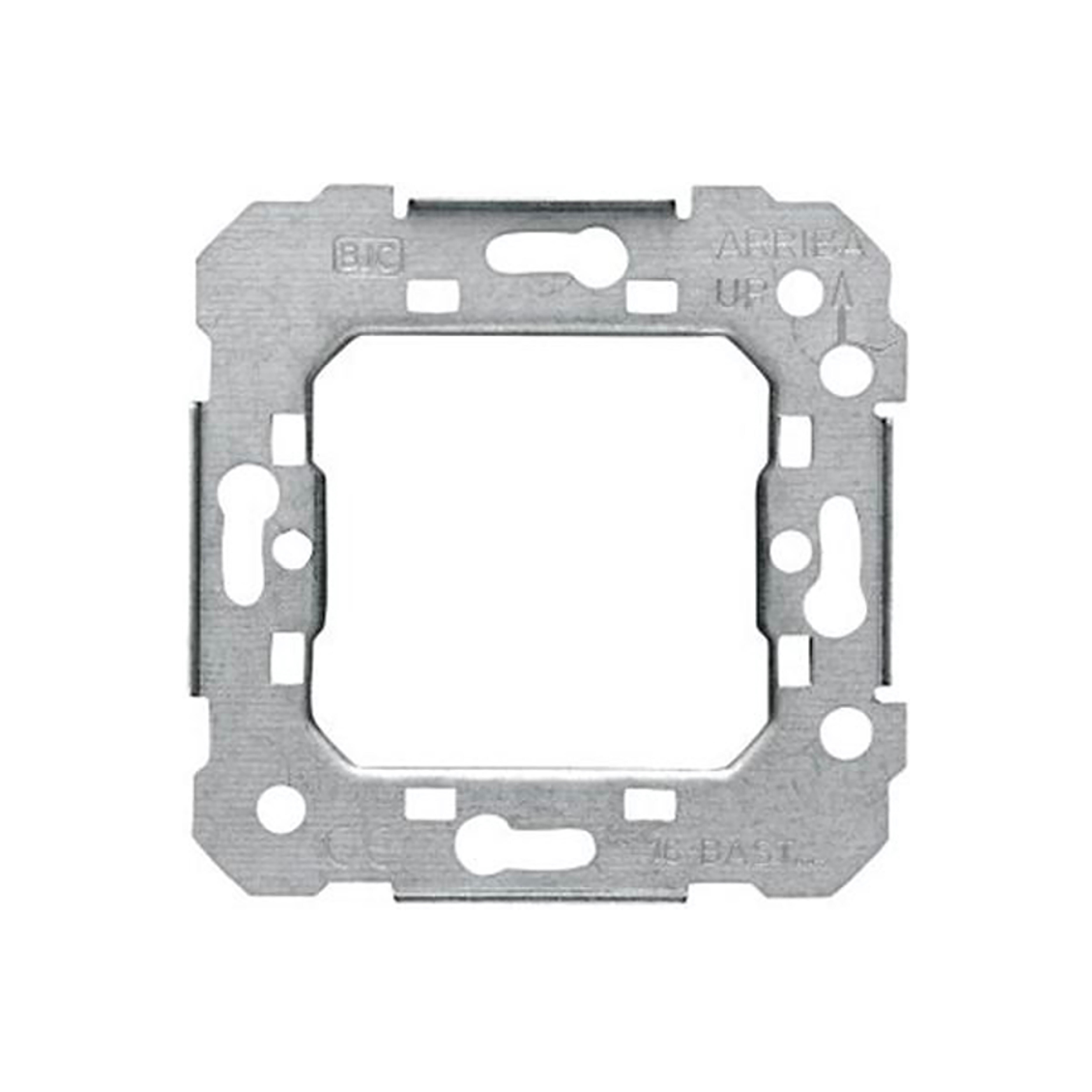 Bastidor metalico necesario para la composcion de los mecanismos de la serie Coral de BJC. Facil instalacion con pestañas que encajan perfectamente en los mecanismos y marcos de la serie.