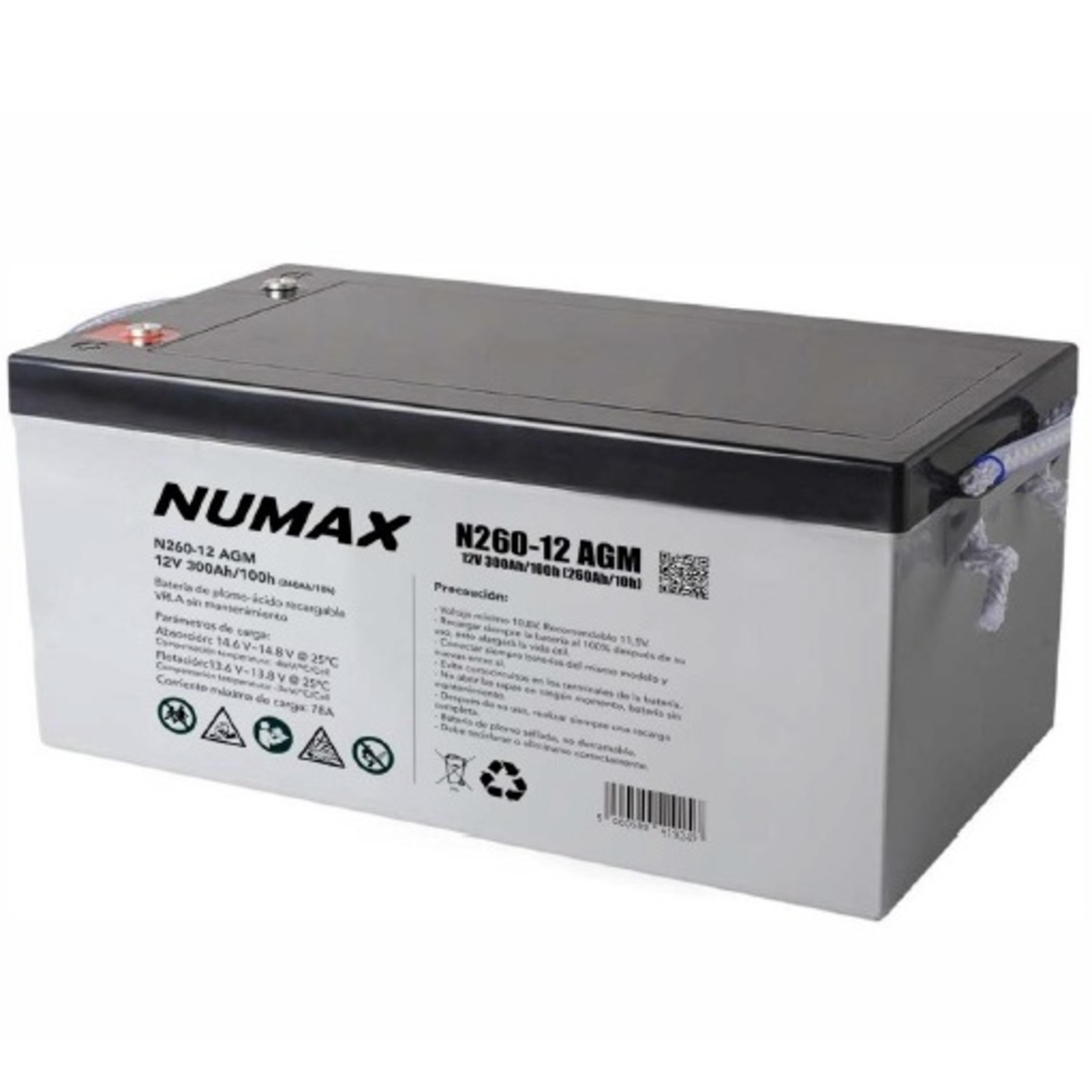 Batería N260-12 Monoblock 12V AGM 300Ah C100 de la marca Numax.