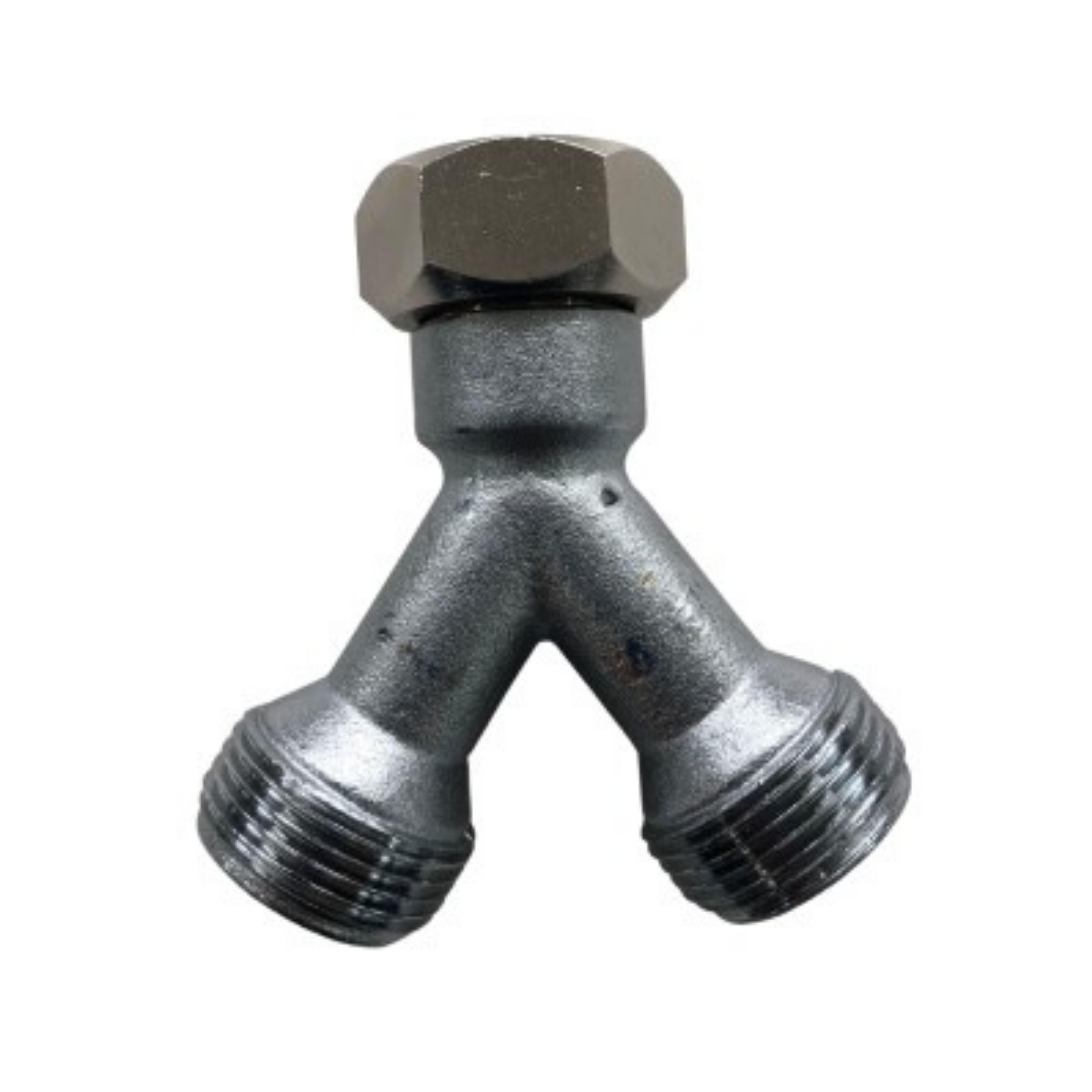 Conector doble de metal para lavadora. Conexión 3/4" Hembra.