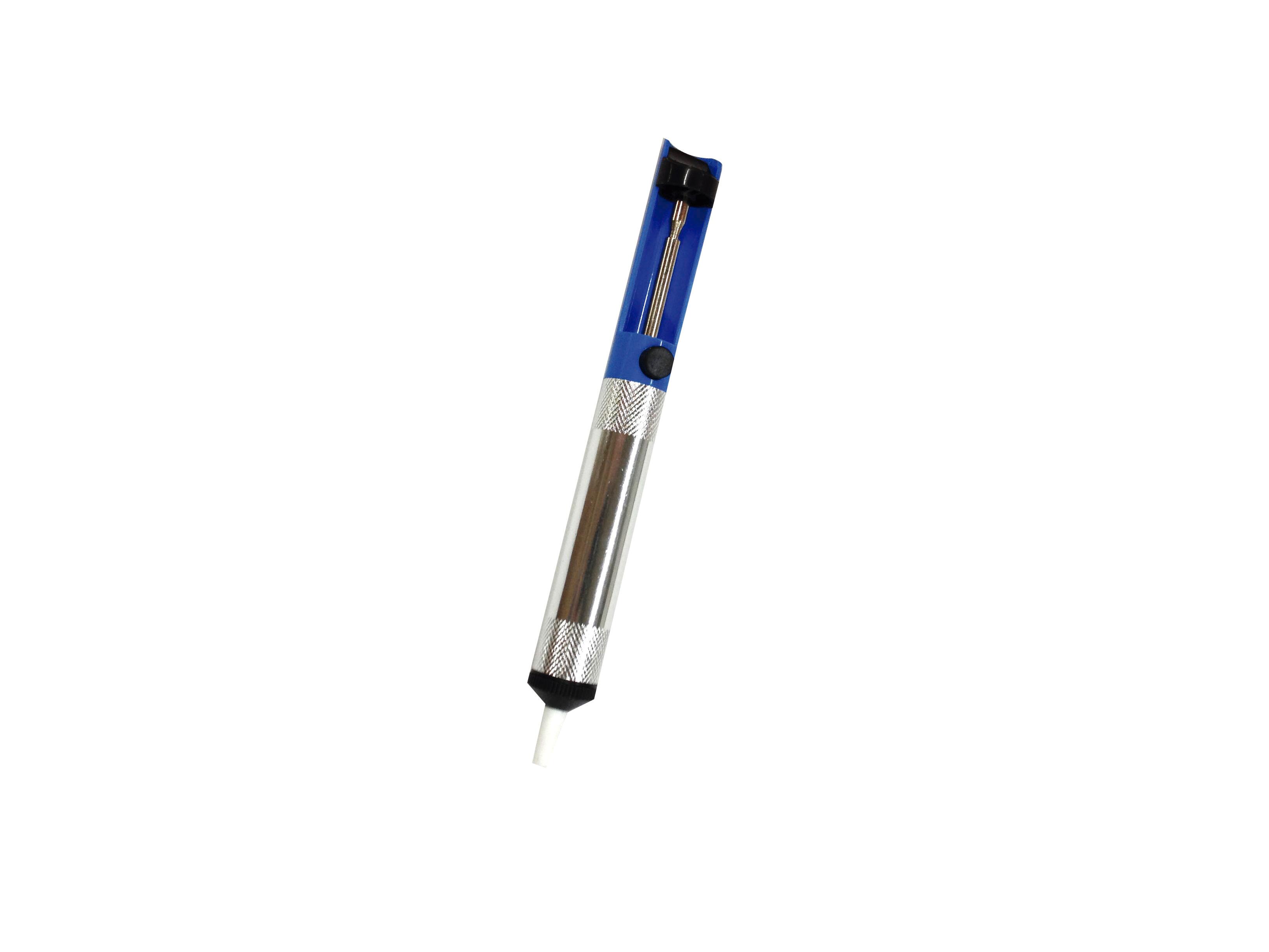 Bomba desoldadora o aspiradora de estaño. Ø boquilla 5mm. Material de la punta Poli-teflón. Material del cuerpo Aluminio + ABS. Manejable con una sola mano. Se usa para el reciclado y recuperación de circuitos y componentes en placas base, mediante la aspiración de estaño sobrante o soldaduras con mal acabado. Peso: 50gr