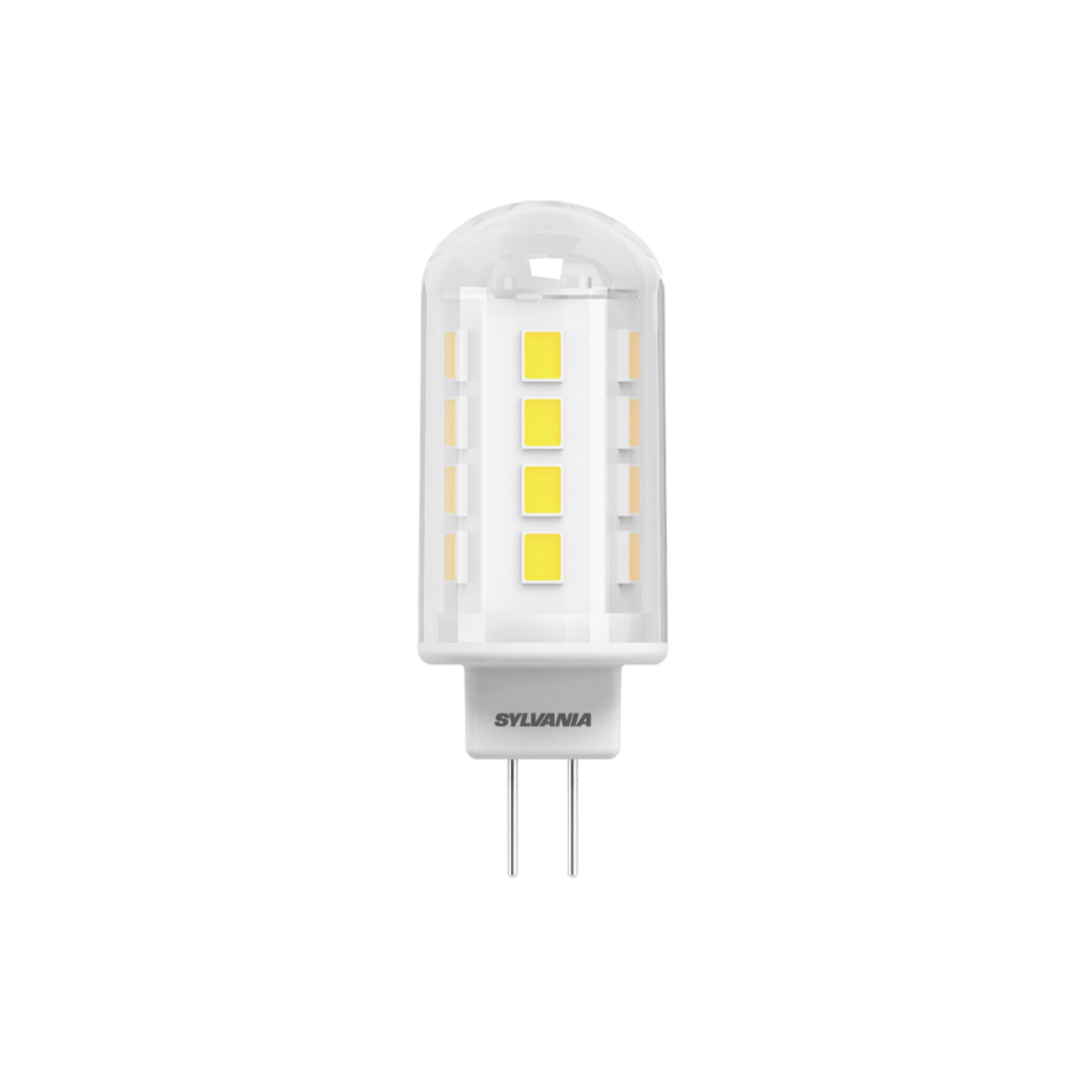 Bombilla LED Bi-pin de 2.2W. Casquillo G4. Potencia lumínica 200 lúmenes. Vida útil 15000 horas. Temperatura de color 2700ºK. Cálida. Diámetro 16mm. Largo 45mm.
