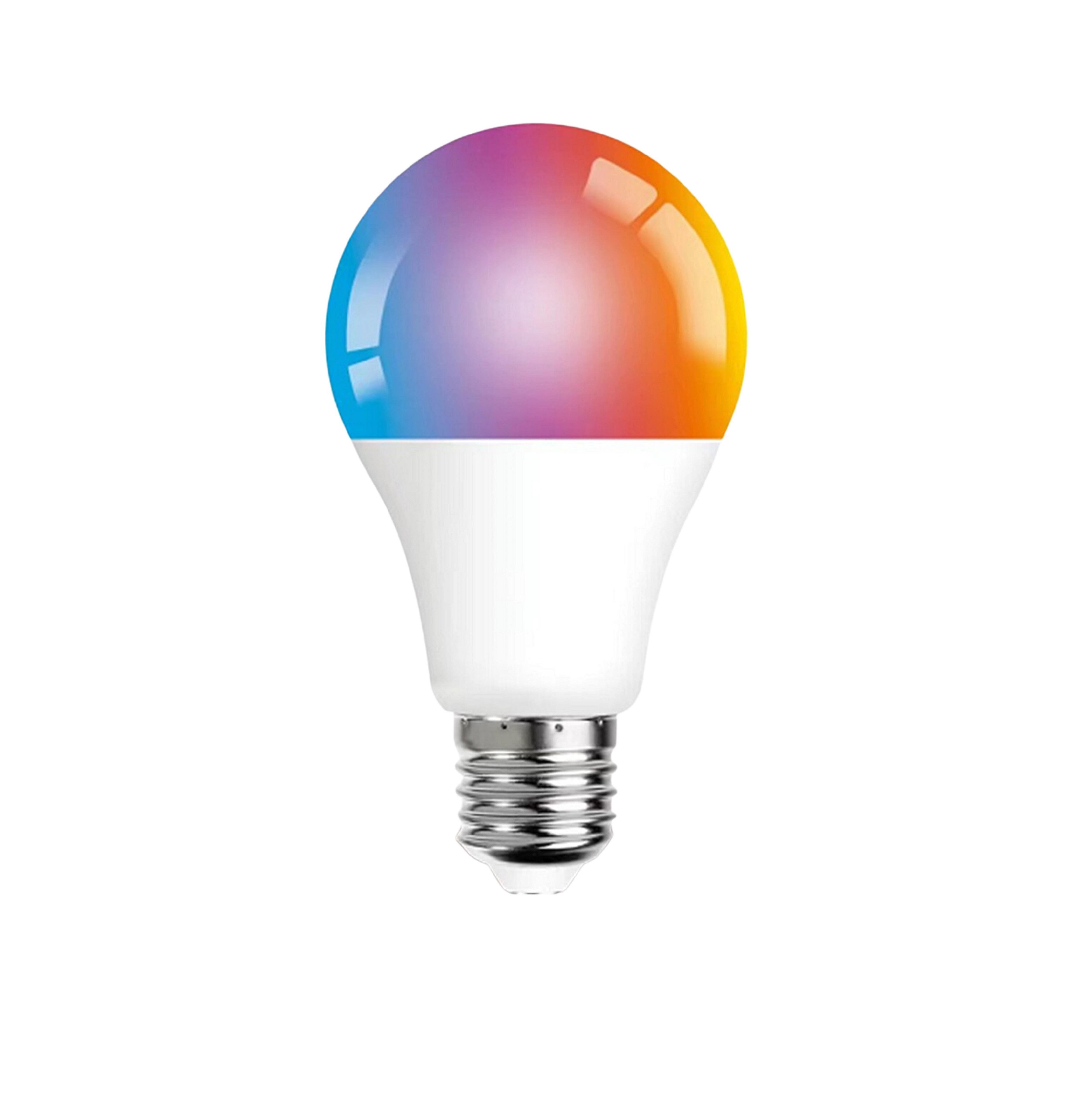 Bombilla LED estandar 8W casquillo E27 y sistema CCT que permite regular la temperatura de color con 3 tonos de luz (cálida-neutra-fría) y RGB en un mismo producto. Conexión wifi.